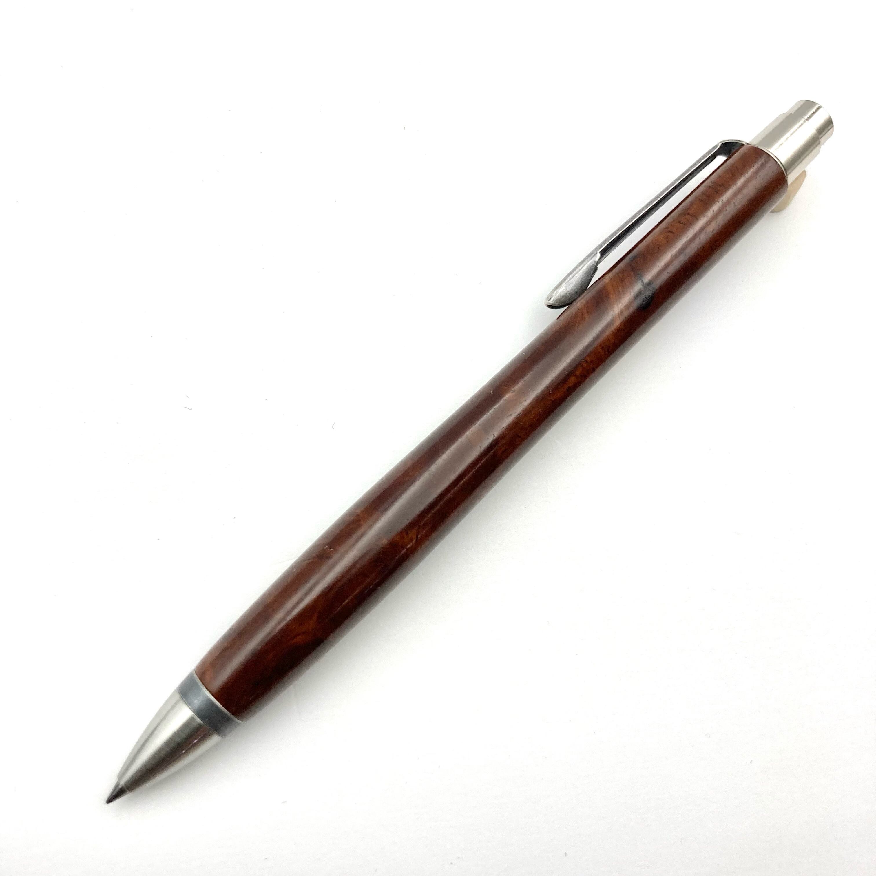 【樹種】大阪の漆塗り職人さんにお願いして、カリンバールに大変希少な国産漆を、何度も塗り重ねて拭き取る(摺り漆)技法で仕上げた透漆ペンです。