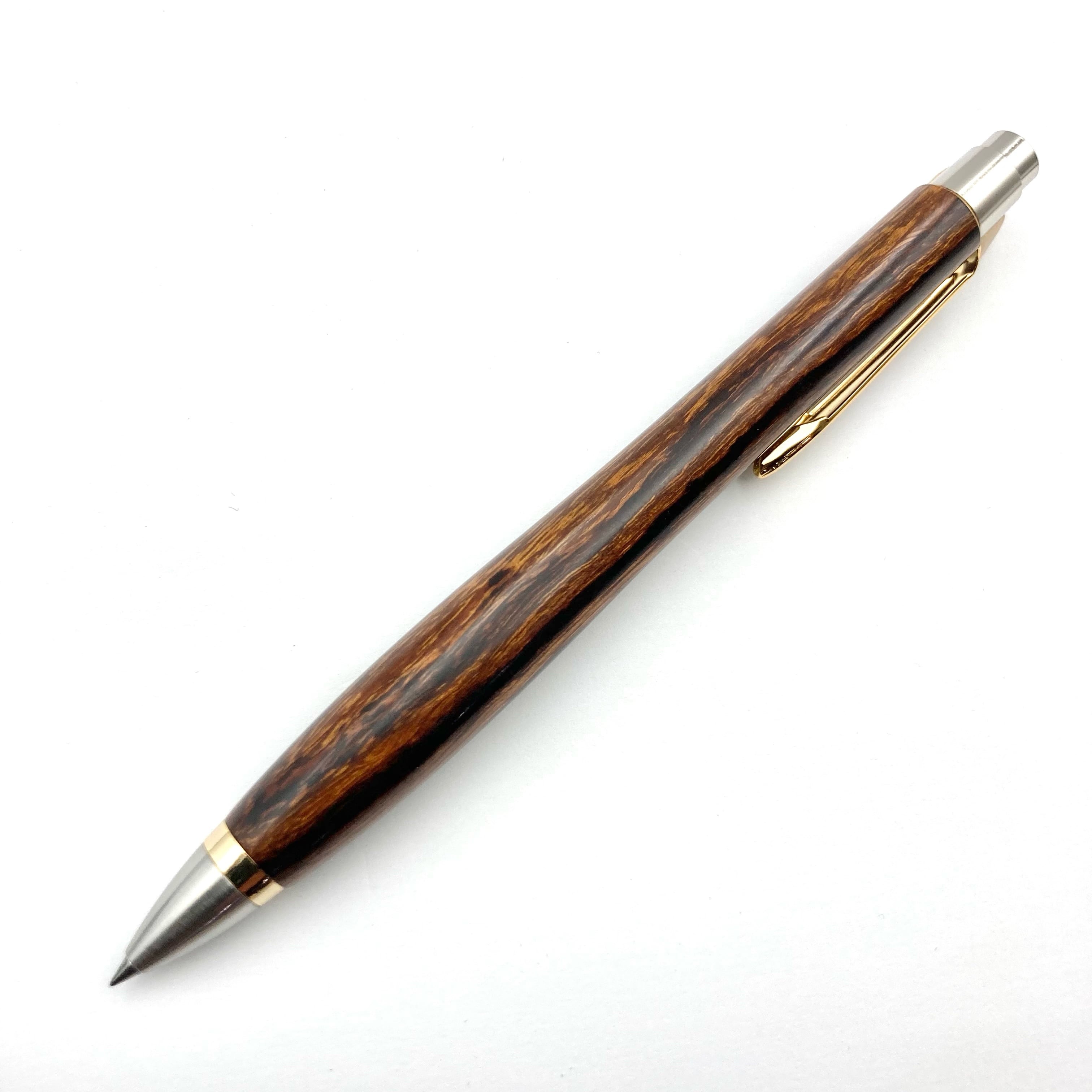 ボールペンのノックシステムは、ドイツ最高のクリックメカニズムを採用してあります。このメカニズムはユニークな機構のため、クリックしたときのカチカチ音が静かで、どんな場所でも気兼ねなく使うことができます。滑らかに動くこのプッシュ感覚を一度味わうと他には戻れなくなってしまうほどの魅力があります。 100分の1単位の加工精度で削り出されたペン先は、軸ブレも全くありません。