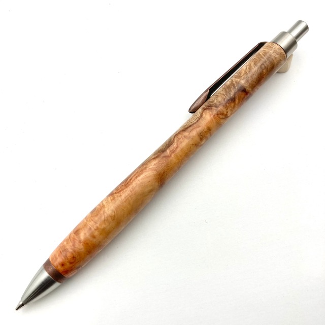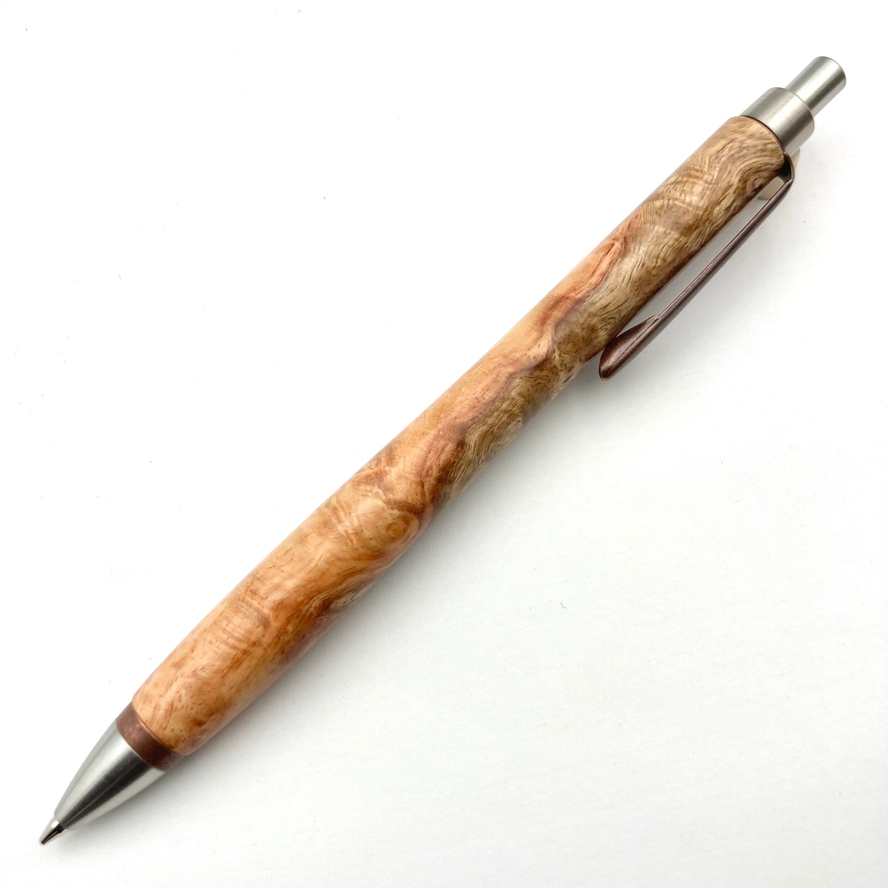 ペンシルは軸ブレが起こりにくい固定式口金を採用し、木の表情を最大限に楽しめる木軸の長さと、書き心地にこだわったバランスで金具を設計してあります。
