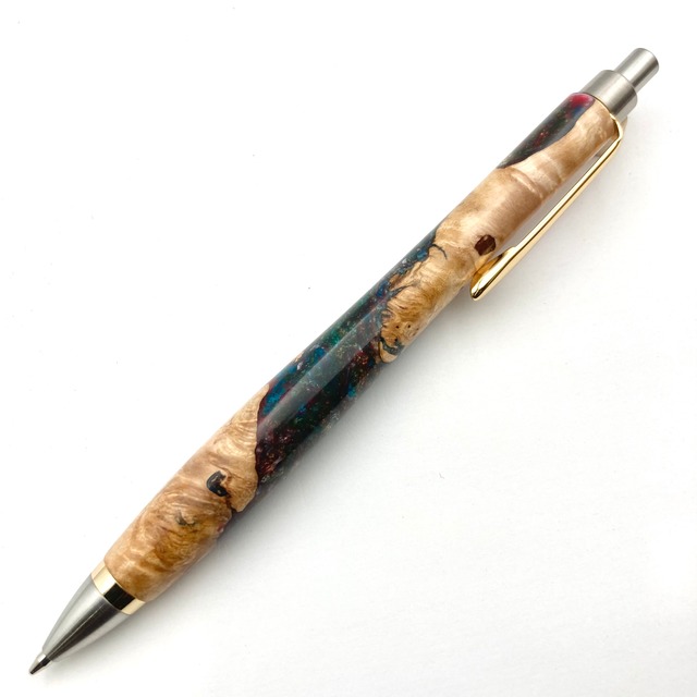 ペンシルは軸ブレが起こりにくい固定式口金を採用し、木の表情を最大限に楽しめる木軸の長さと、書き心地にこだわったバランスで金具を設計してあります。