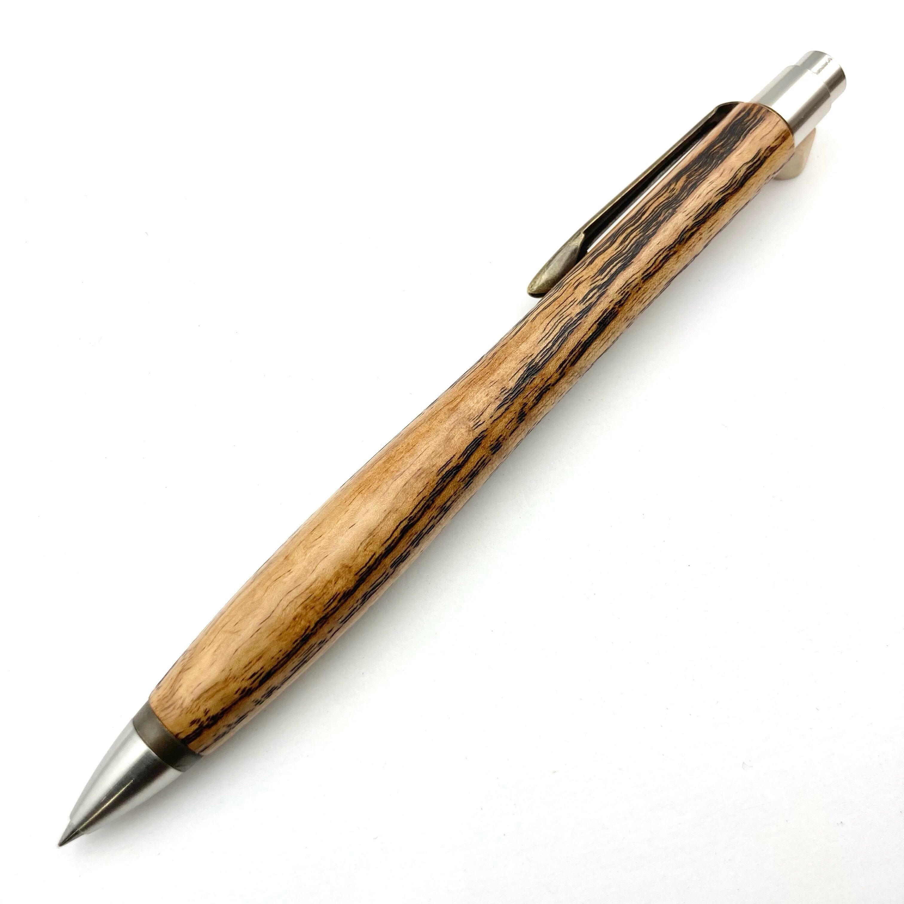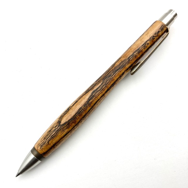 ボールペンのノックシステムは、ドイツ最高のクリックメカニズムを採用してあります。このメカニズムはユニークな機構のため、クリックしたときのカチカチ音が静かで、どんな場所でも気兼ねなく使うことができます。滑らかに動くこのプッシュ感覚を一度味わうと他には戻れなくなってしまうほどの魅力があります。 100分の1単位の加工精度で削り出されたペン先は、軸ブレも全くありません。
