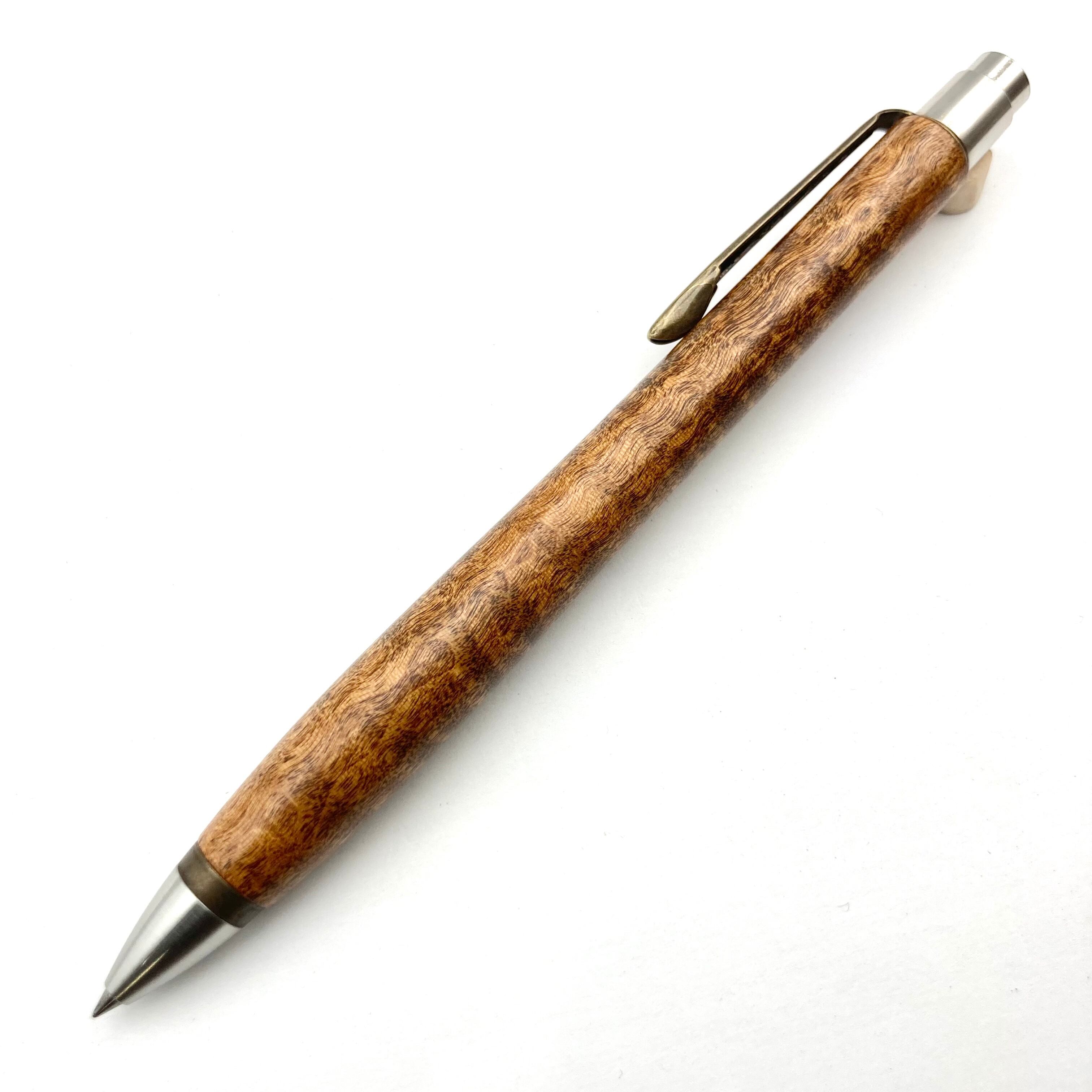 大阪の漆塗り職人さんにお願いして、楓縮杢に大変希少な国産漆を、何度も塗り重ねて拭き取る(摺り漆)技法で仕上げた透漆ペンです。