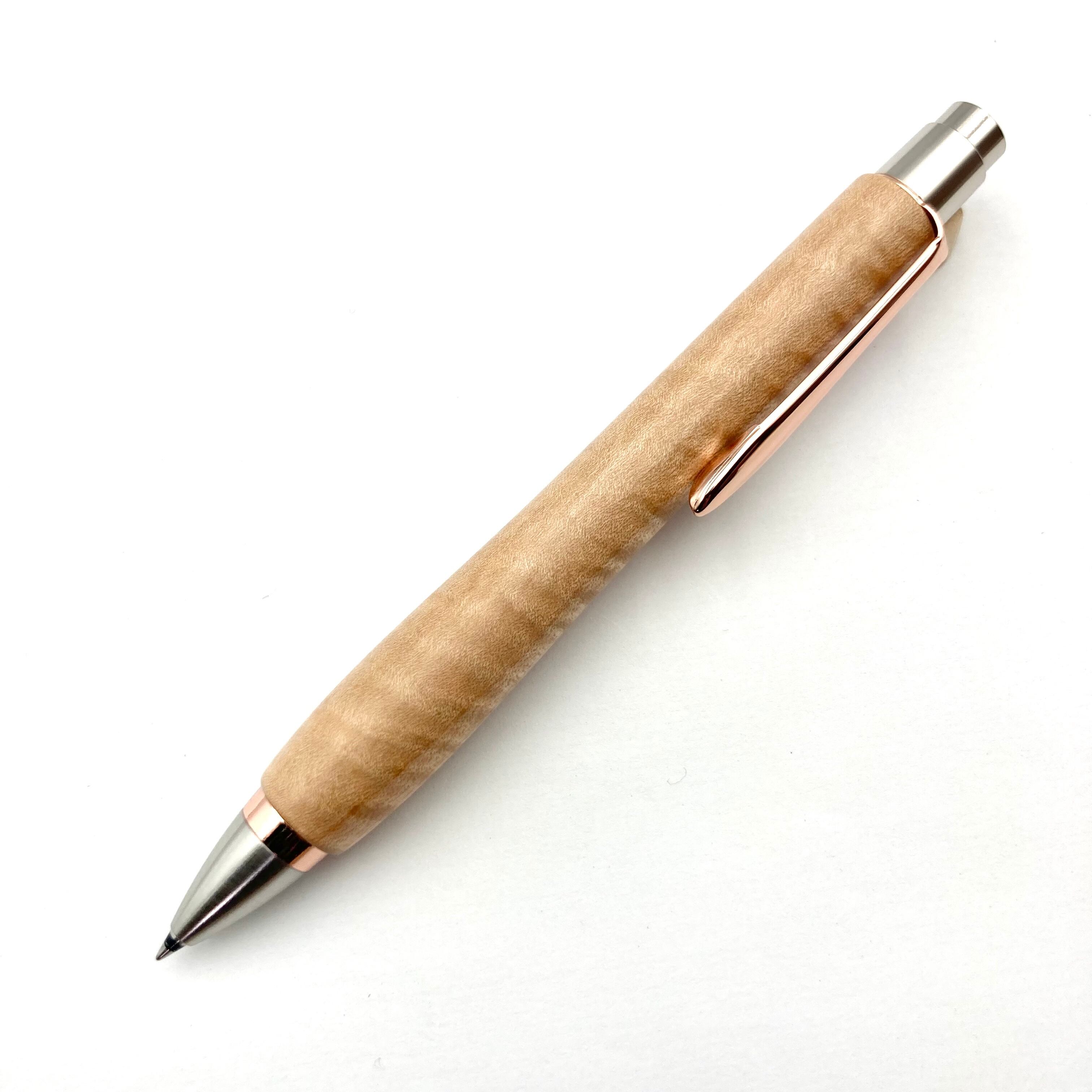 ボールペンのノックシステムは、ドイツ最高のクリックメカニズムを採用してあります。このメカニズムはユニークな機構のため、クリックしたときのカチカチ音が静かで、どんな場所でも気兼ねなく使うことができます。滑らかに動くこのプッシュ感覚を一度味わうと他には戻れなくなってしまうほどの魅力があります。 100分の1単位の加工精度で削り出されたペン先は、軸ブレも全くありません。