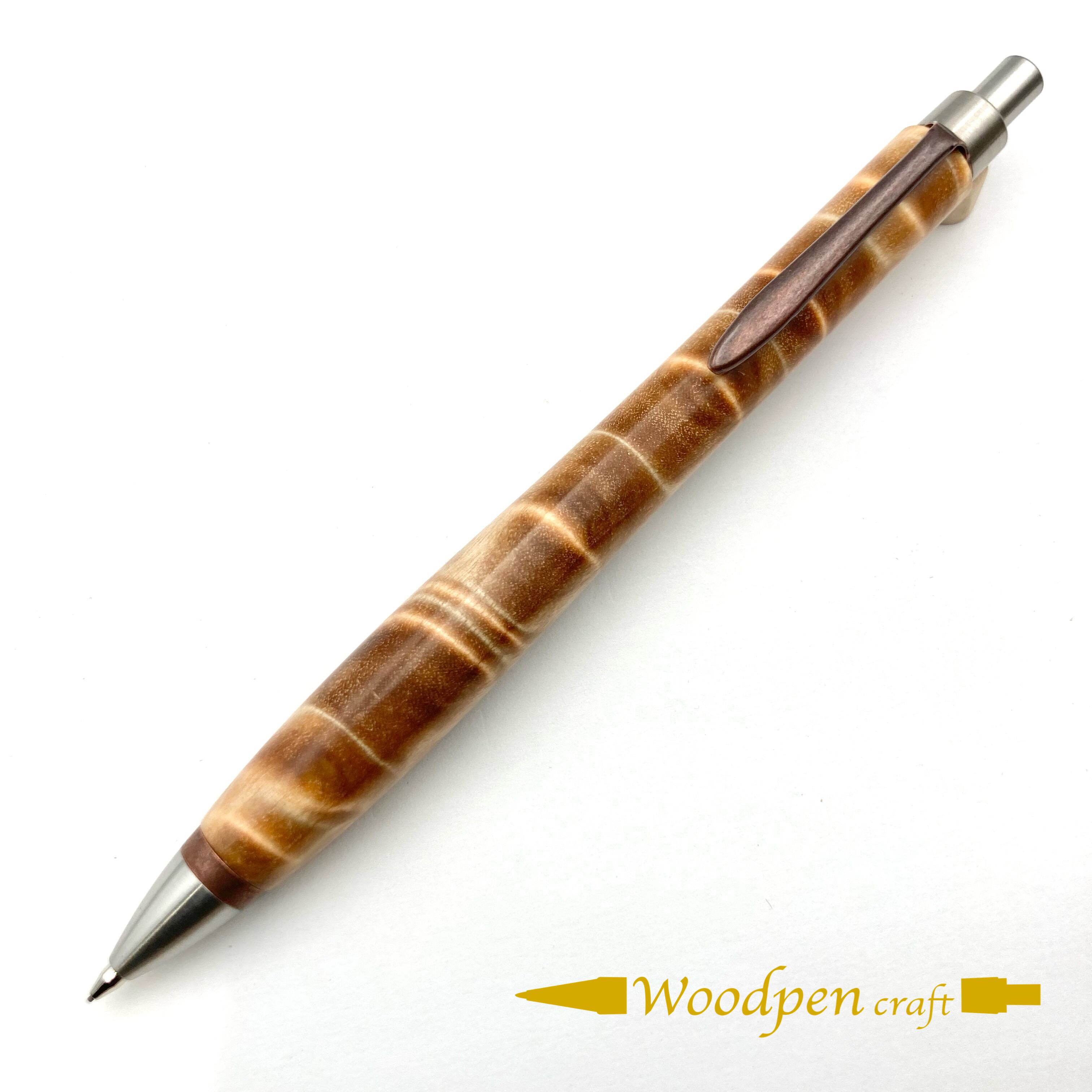 ペンシルは軸ブレが起こりにくい固定式口金を採用し、木の表情を最大限に楽しめる木軸の長さと、書き心地にこだわったバランスで金具を設計してあります。