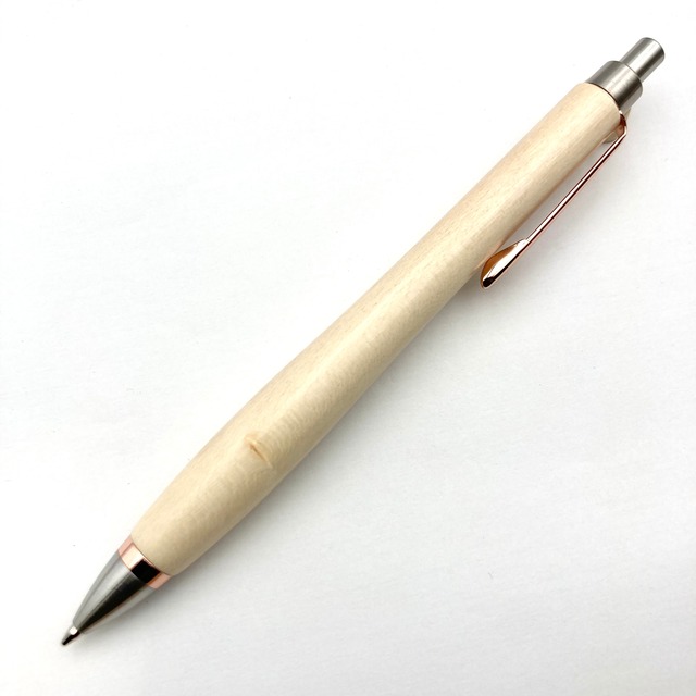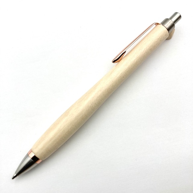 ペンシルは軸ブレが起こりにくい固定式口金を採用し、木の表情を最大限に楽しめる木軸の長さと、書き心地にこだわったバランスで金具を設計してあります。