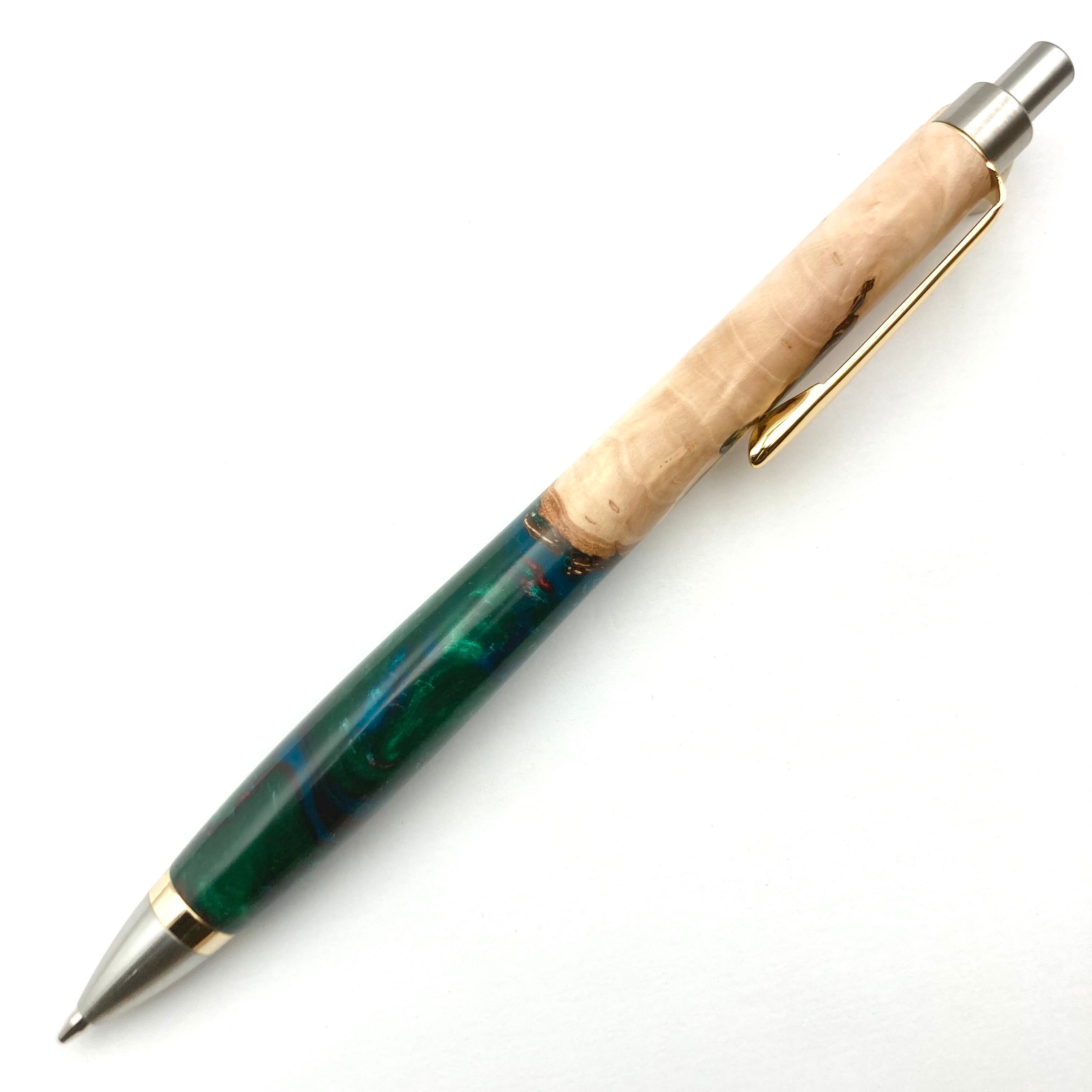 ペンシルは軸ブレが起こりにくい固定式口金を採用し、木の表情を最大限に楽しめる木軸の長さと、書き心地にこだわったバランスで金具を設計してあります。