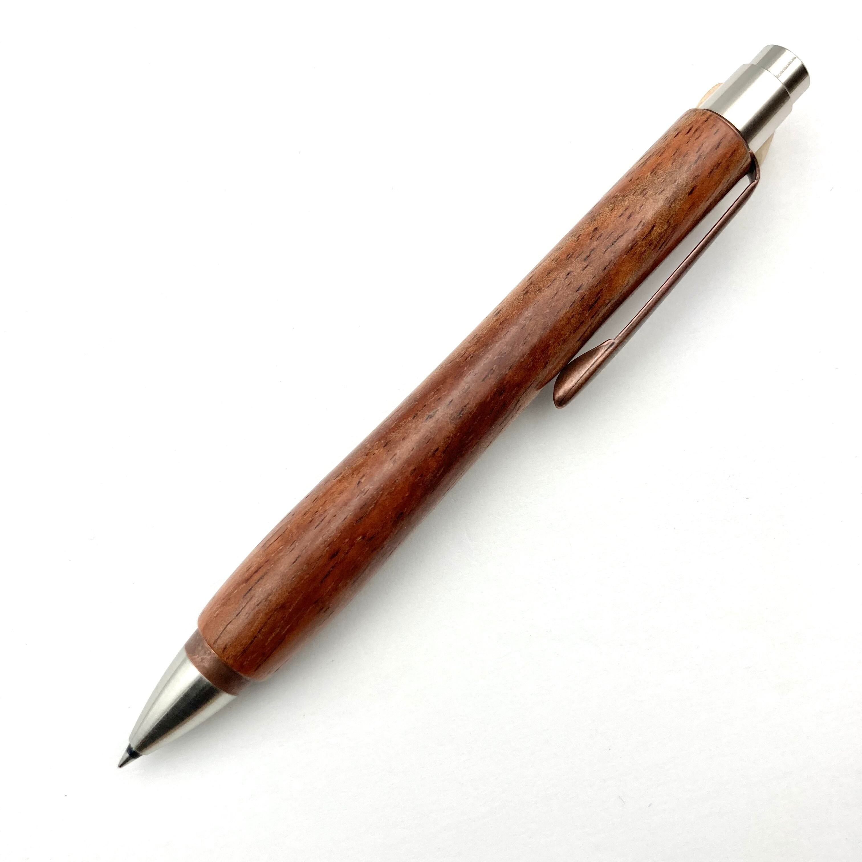 ボールペンのノックシステムは、ドイツ最高のクリックメカニズムを採用してあります。このメカニズムはユニークな機構のため、クリックしたときのカチカチ音が静かで、どんな場所でも気兼ねなく使うことができます。滑らかに動くこのプッシュ感覚を一度味わうと他には戻れなくなってしまうほどの魅力があります。 100分の1単位の加工精度で削り出されたペン先は、軸ブレも全くありません。