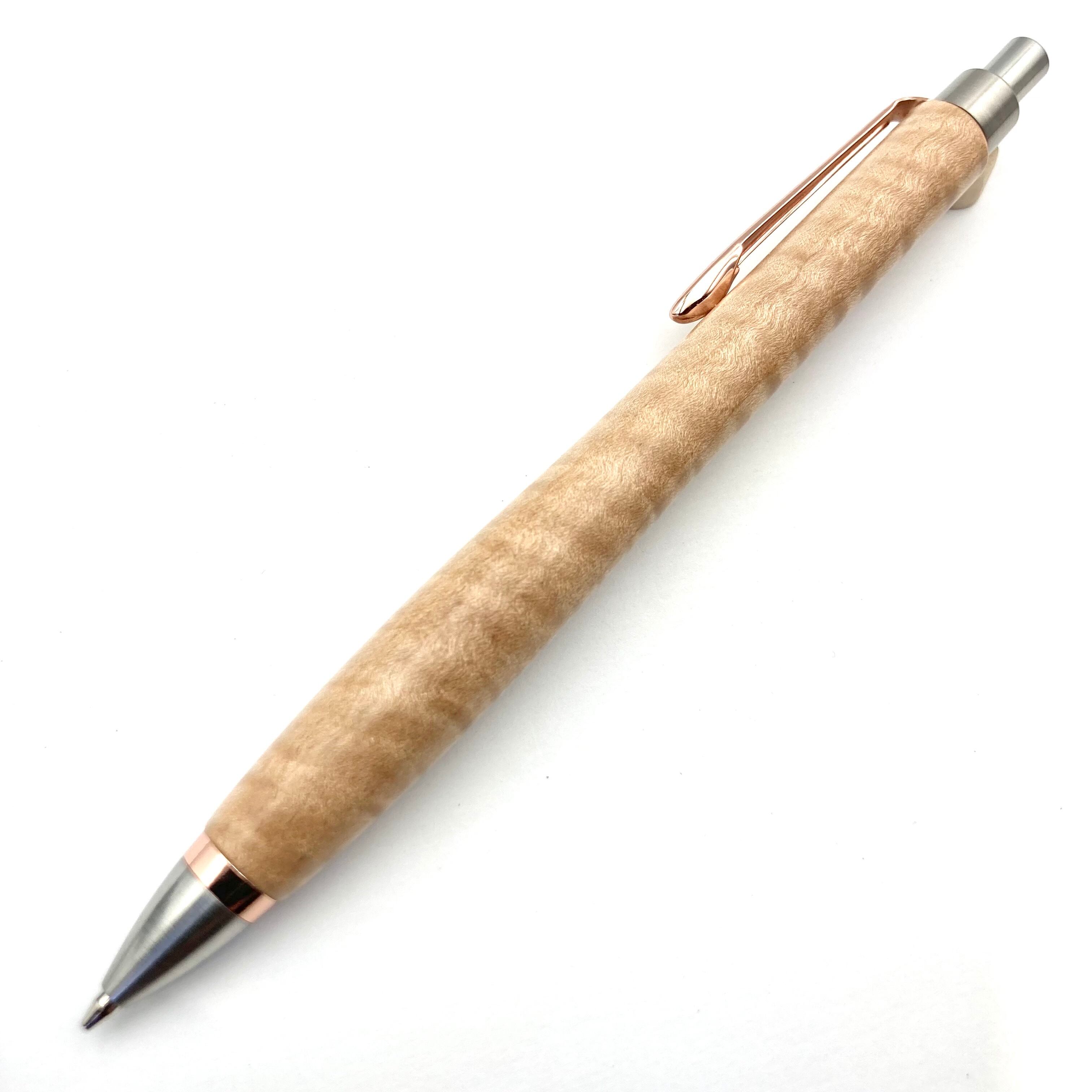 ペンシルは軸ブレが起こりにくい固定式口金を採用し、木の表情を最大限に楽しめる木軸の長さと、書き心地にこだわったバランスで金具を設計してあります。