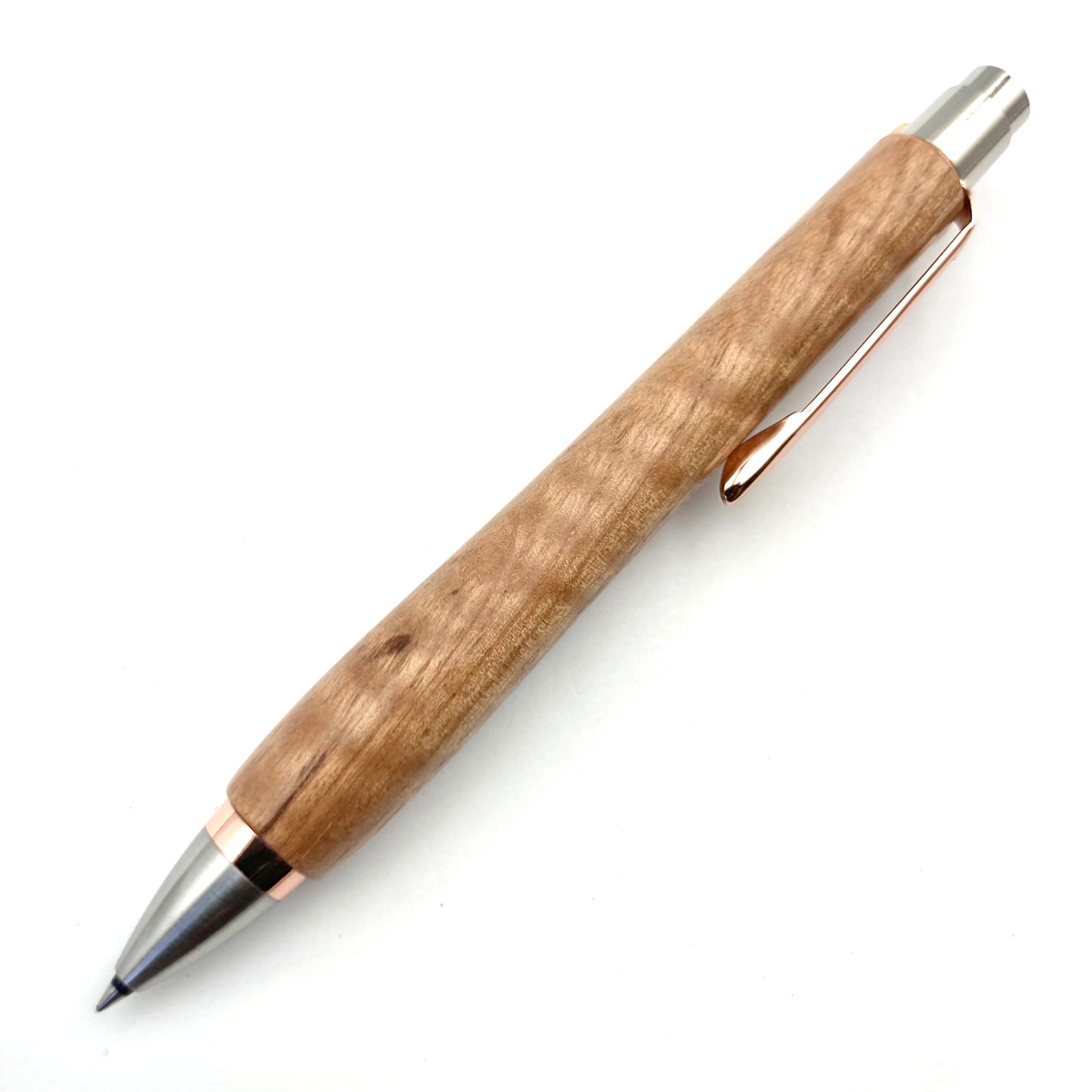ボールペンのノックシステムは、ドイツ最高のクリックメカニズムを採用してあります。このメカニズムはユニークな機構のため、クリックしたときのカチカチ音が静かで、どんな場所でも気兼ねなく使うことができます。滑らかに動くこのプッシュ感覚を一度味わうと他には戻れなくなってしまうほどの魅力があります。 100分の1単位の加工精度で削り出されたペン先は、軸ブレも全くありません。