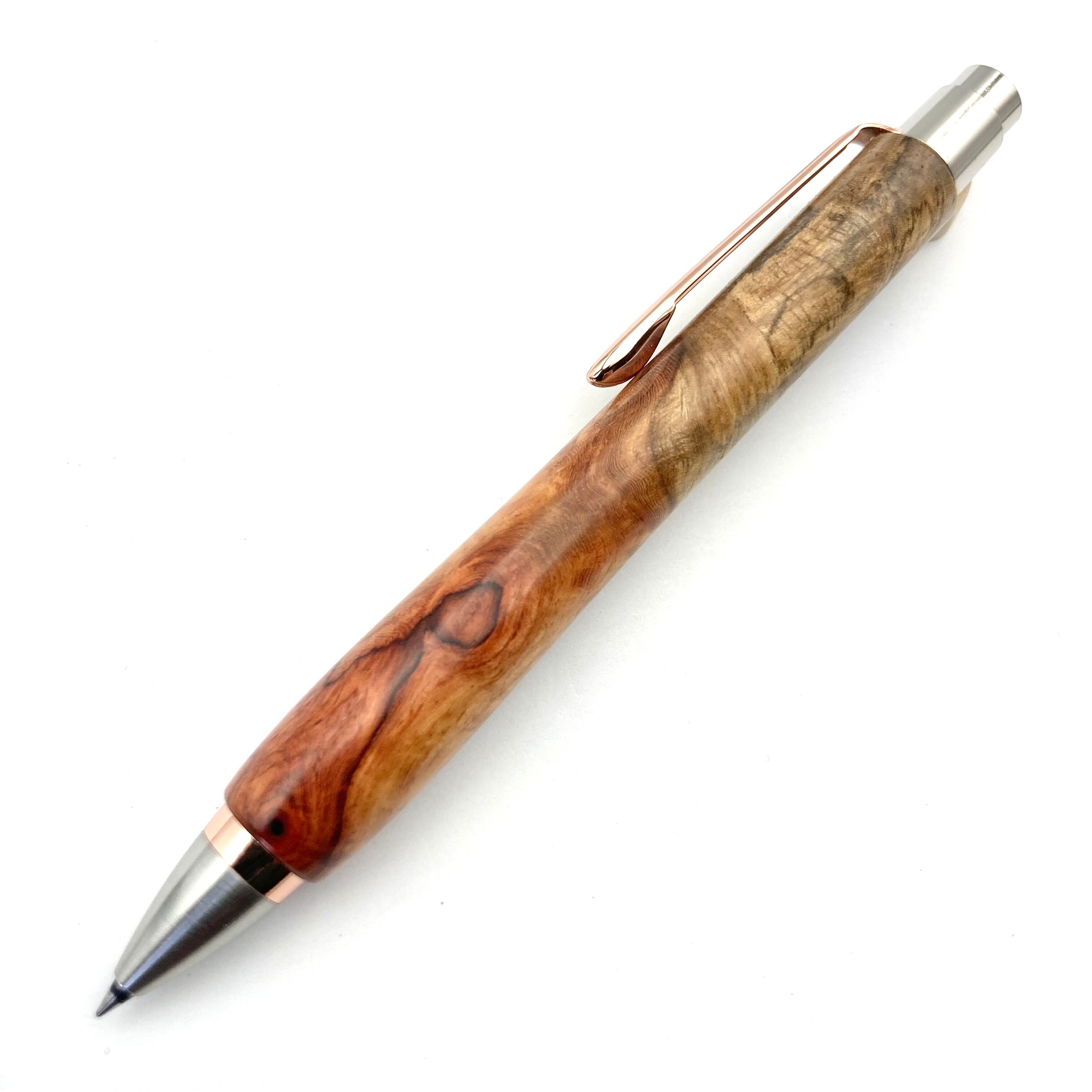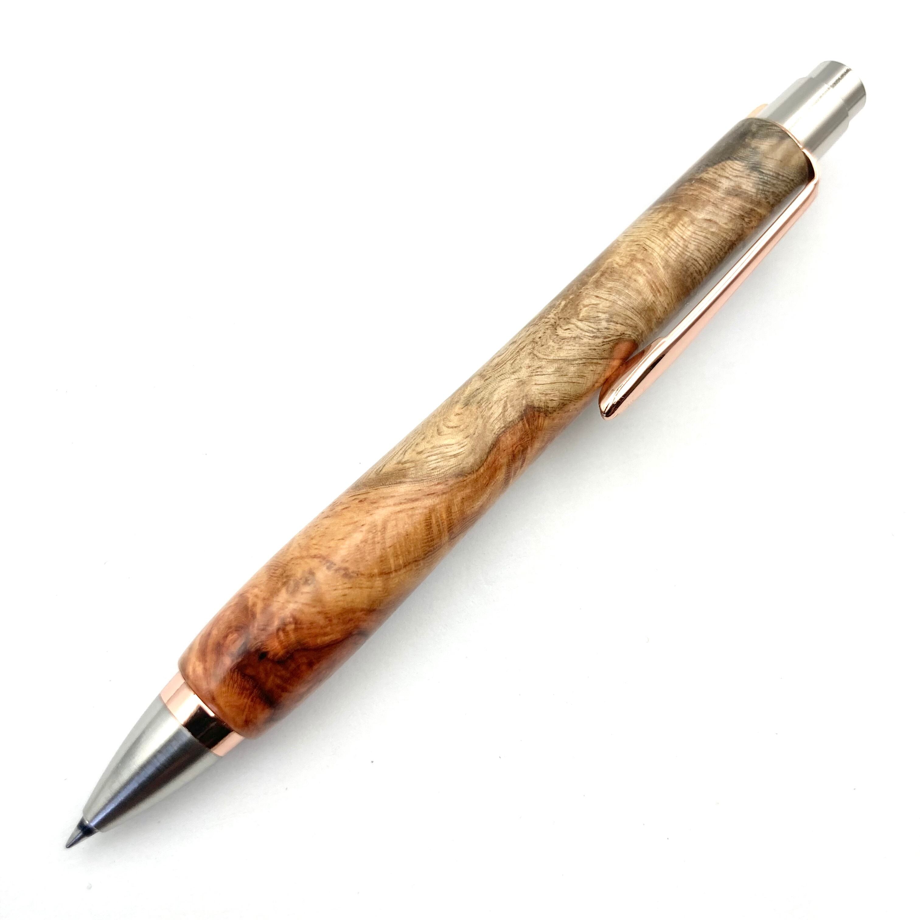 ボールペンのノックシステムは、ドイツ最高のクリックメカニズムを採用してあります。このメカニズムはユニークな機構のため、クリックしたときのカチカチ音が静かで、どんな場所でも気兼ねなく使うことができます。滑らかに動くこのプッシュ感覚を一度味わうと他には戻れなくなってしまうほどの魅力があります。 100分の1単位の加工精度で削り出されたペン先は、軸ブレも全くありません。
