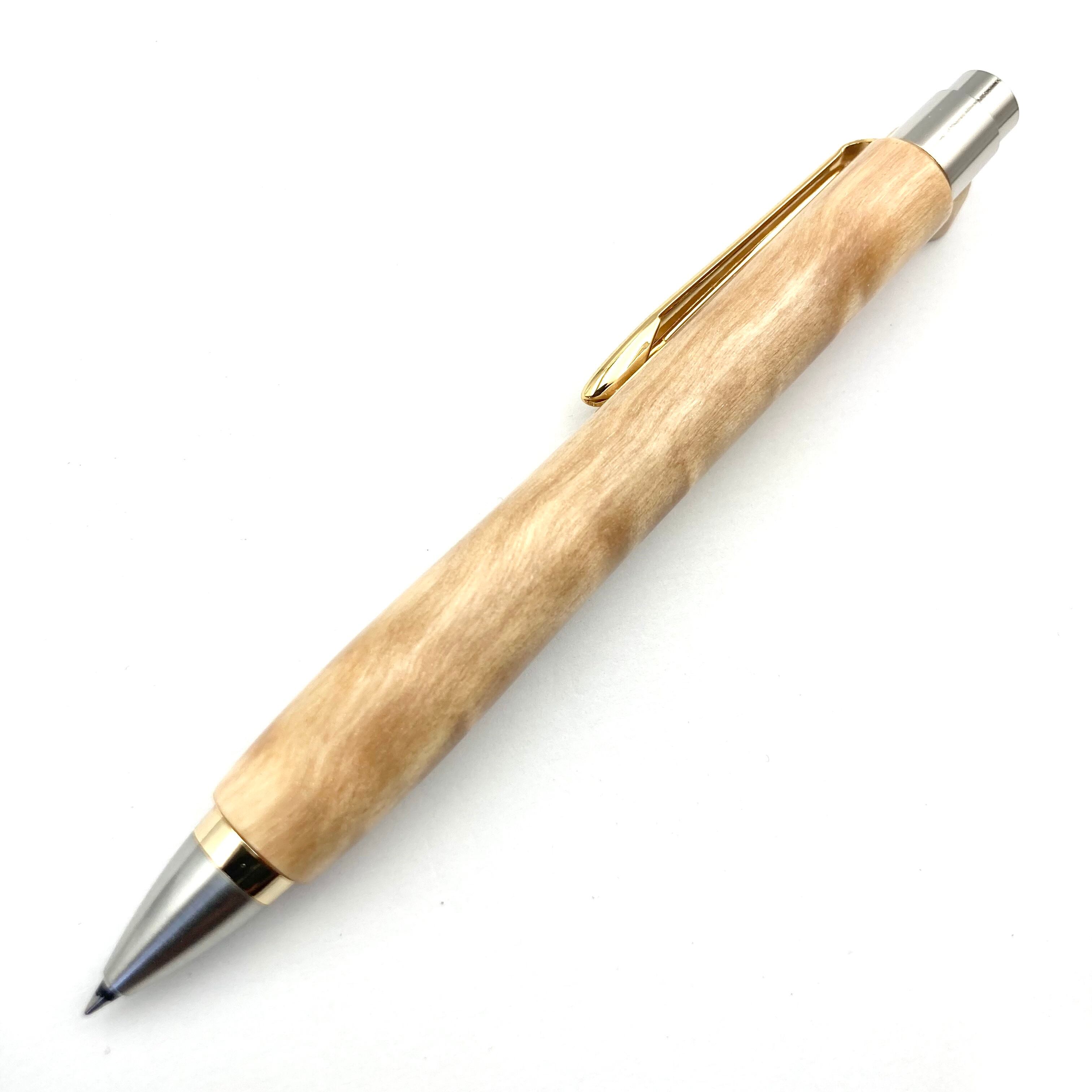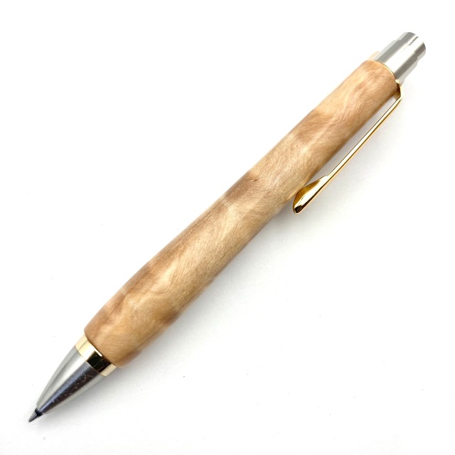 ボールペンのノックシステムは、ドイツ最高のクリックメカニズムを採用してあります。このメカニズムはユニークな機構のため、クリックしたときのカチカチ音が静かで、どんな場所でも気兼ねなく使うことができます。滑らかに動くこのプッシュ感覚を一度味わうと他には戻れなくなってしまうほどの魅力があります。 100分の1単位の加工精度で削り出されたペン先は、軸ブレも全くありません。