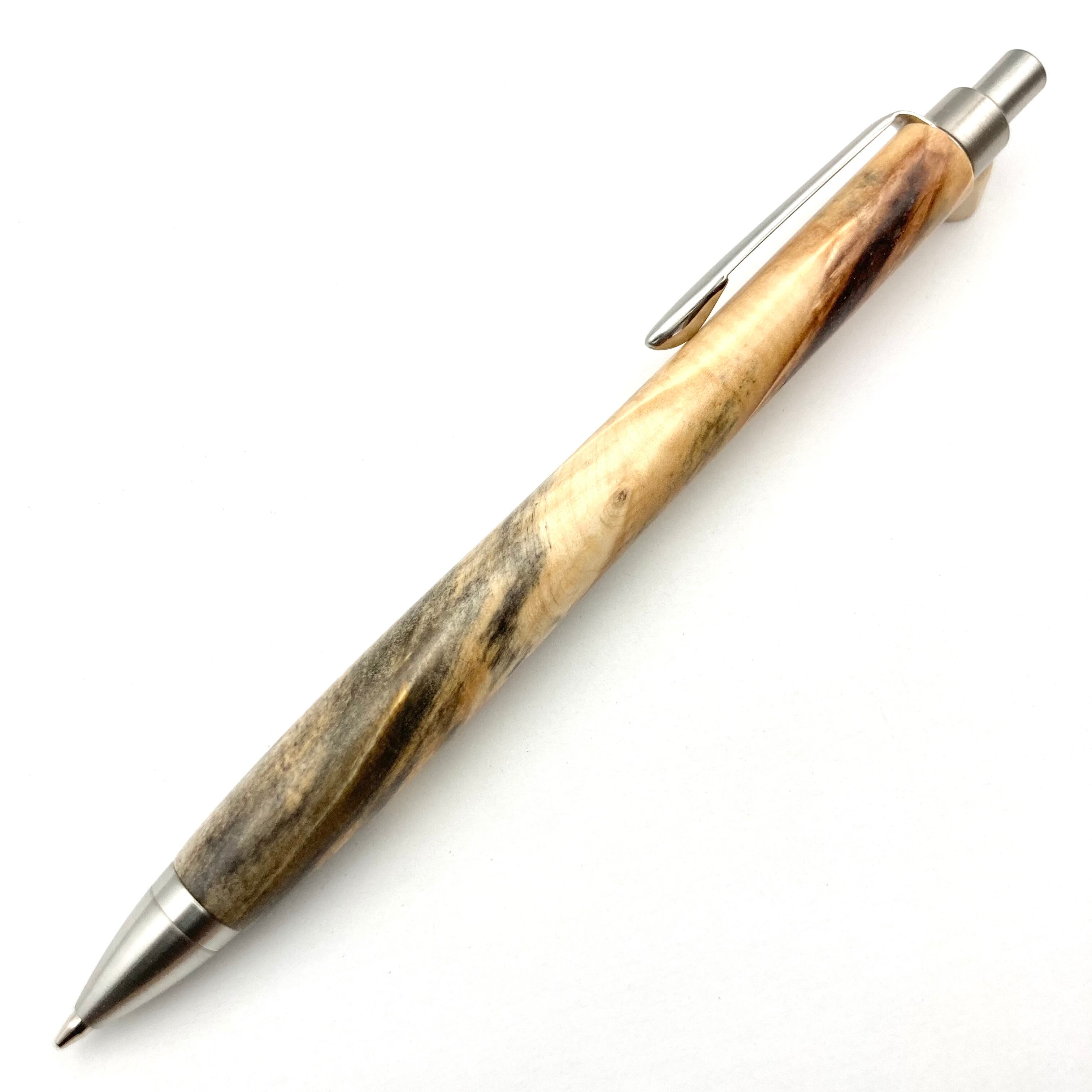 ペンシルは軸ブレが起こりにくい固定式口金を採用し、木の表情を最大限に楽しめる木軸の長さと、書き心地にこだわったバランスで金具を設計してあります。