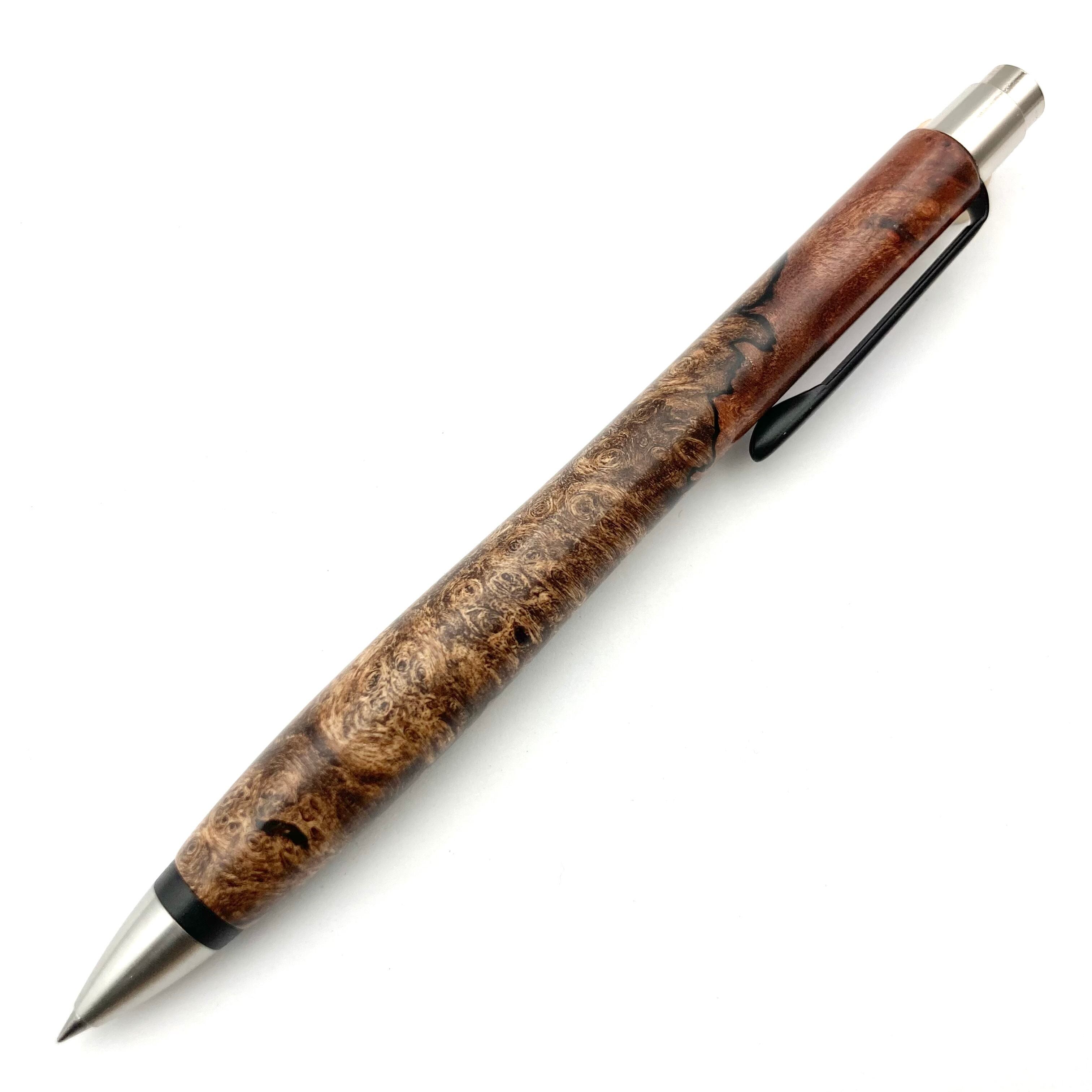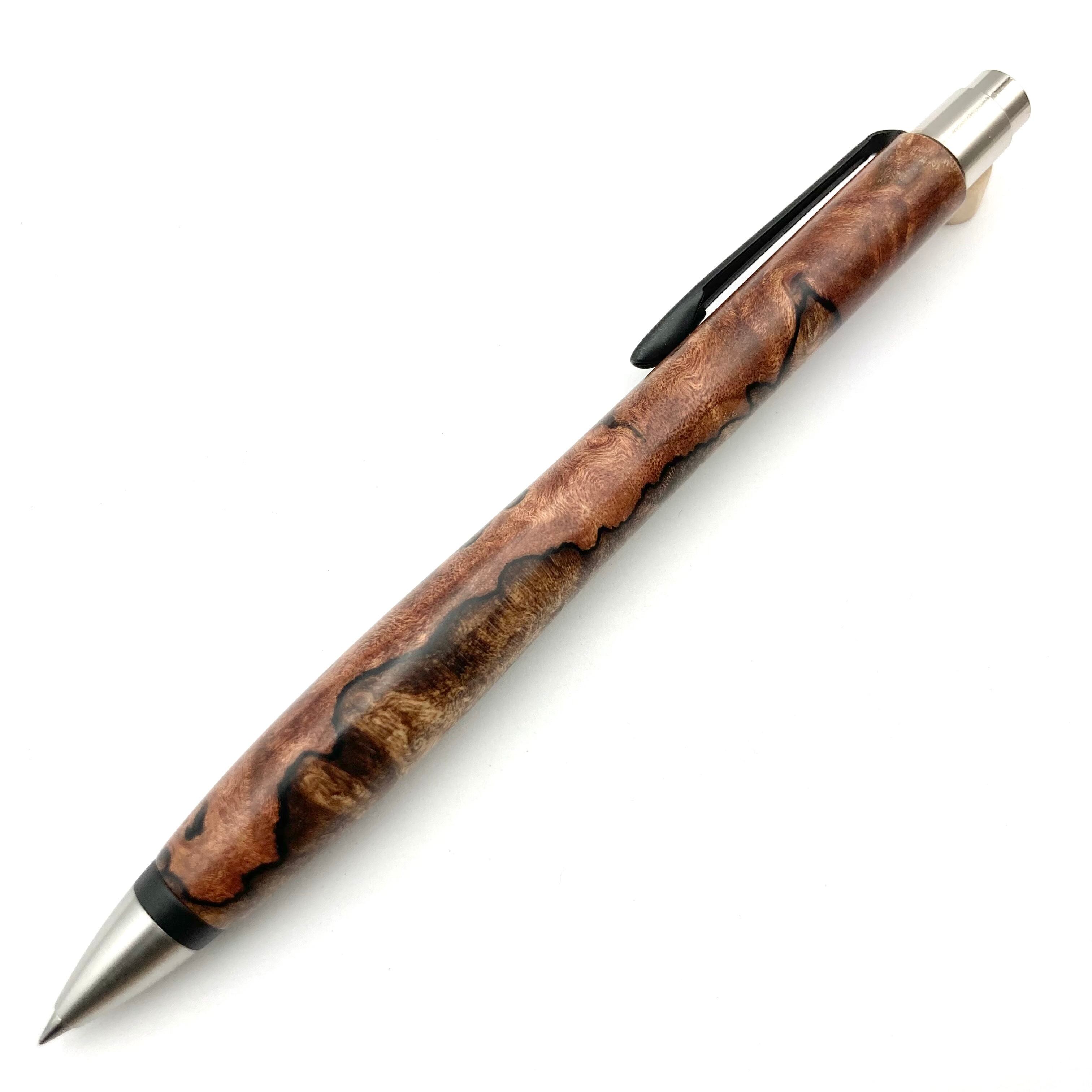 ボールペンのノックシステムは、ドイツ最高のクリックメカニズムを採用してあります。このメカニズムはユニークな機構のため、クリックしたときのカチカチ音が静かで、どんな場所でも気兼ねなく使うことができます。滑らかに動くこのプッシュ感覚を一度味わうと他には戻れなくなってしまうほどの魅力があります。 100分の1単位の加工精度で削り出されたペン先は、軸ブレも全くありません。