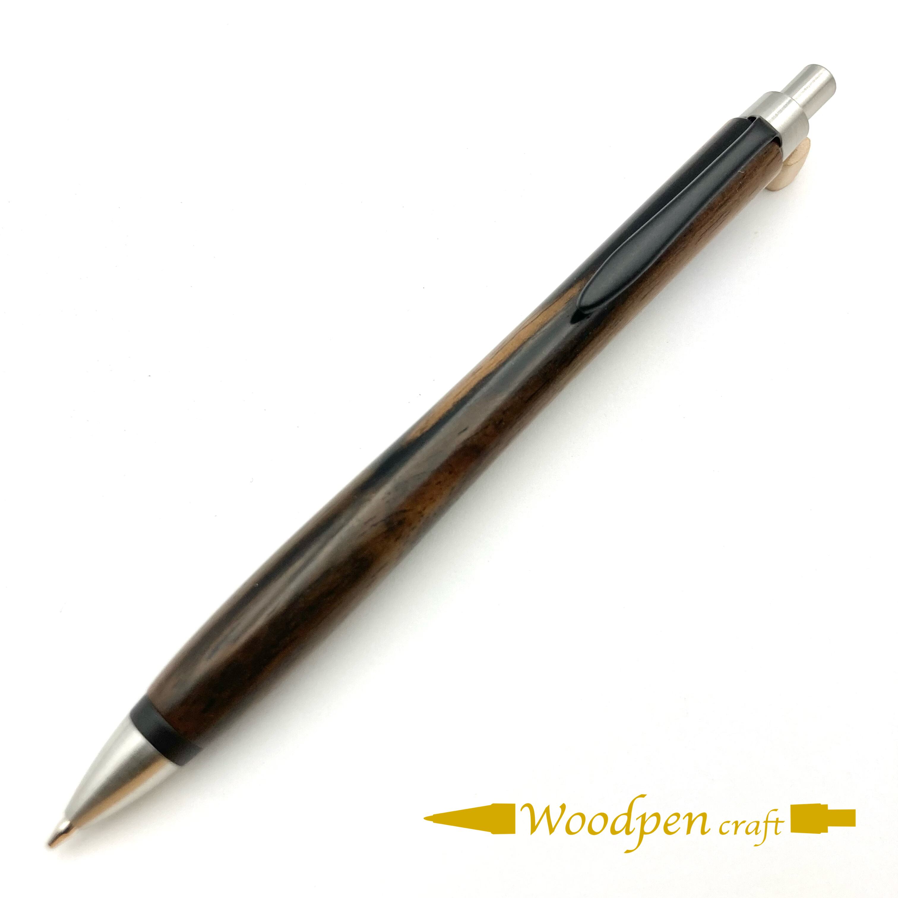 ペンシルは軸ブレが起こりにくい固定式口金を採用し、木の表情を最大限に楽しめる木軸の長さと、書き心地にこだわったバランスで金具を設計してあります。