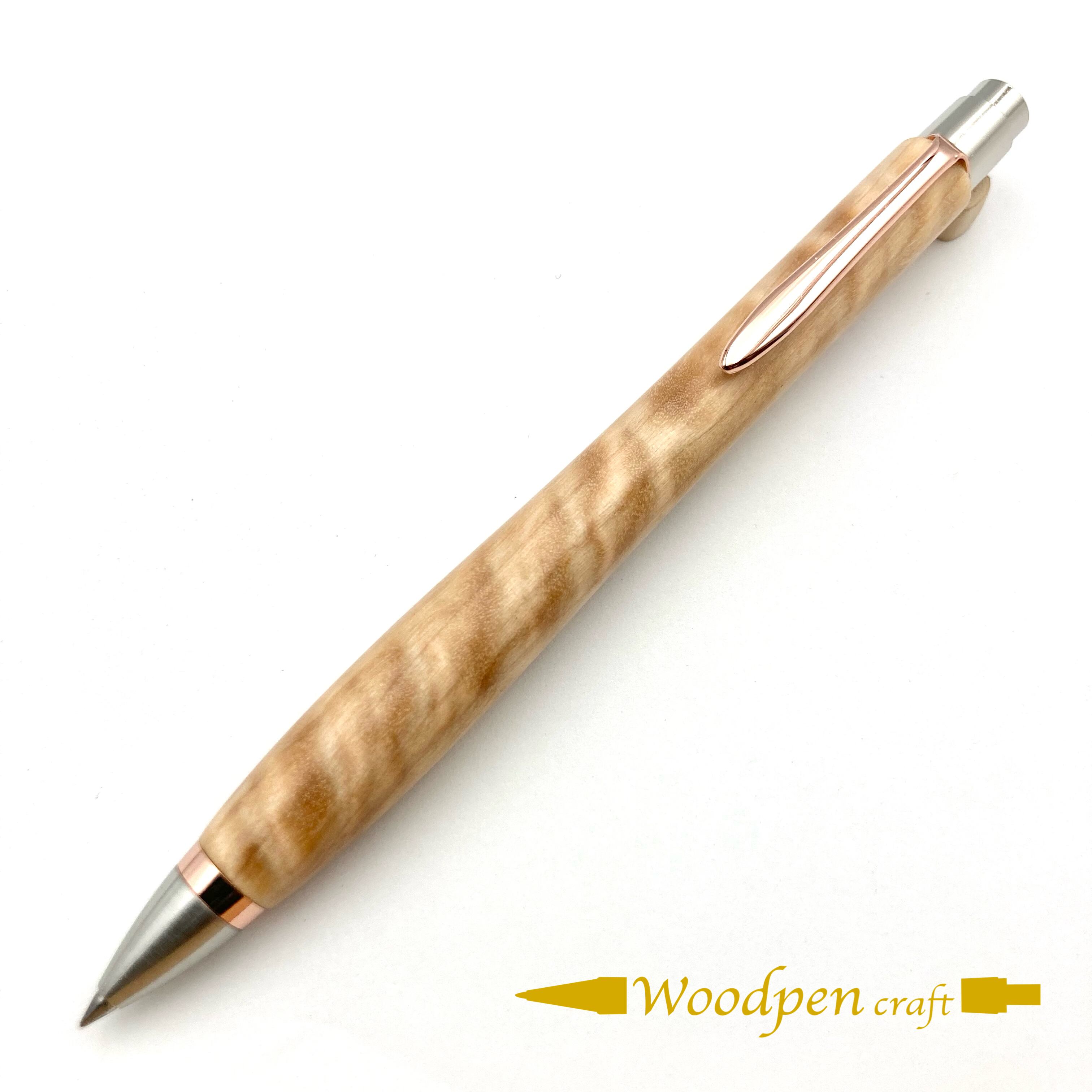 ボールペンのノックシステムは、ドイツ最高のクリックメカニズムを採用してあります。このメカニズムはユニークな機構のため、クリックしたときのカチカチ音が静かで、どんな場所でも気兼ねなく使うことができます。滑らかに動くこのプッシュ感覚を一度味わうと他には戻れなくなってしまうほどの魅力があります。 100分の1単位の加工精度で削り出されたペン先は、軸ブレも全くありません。