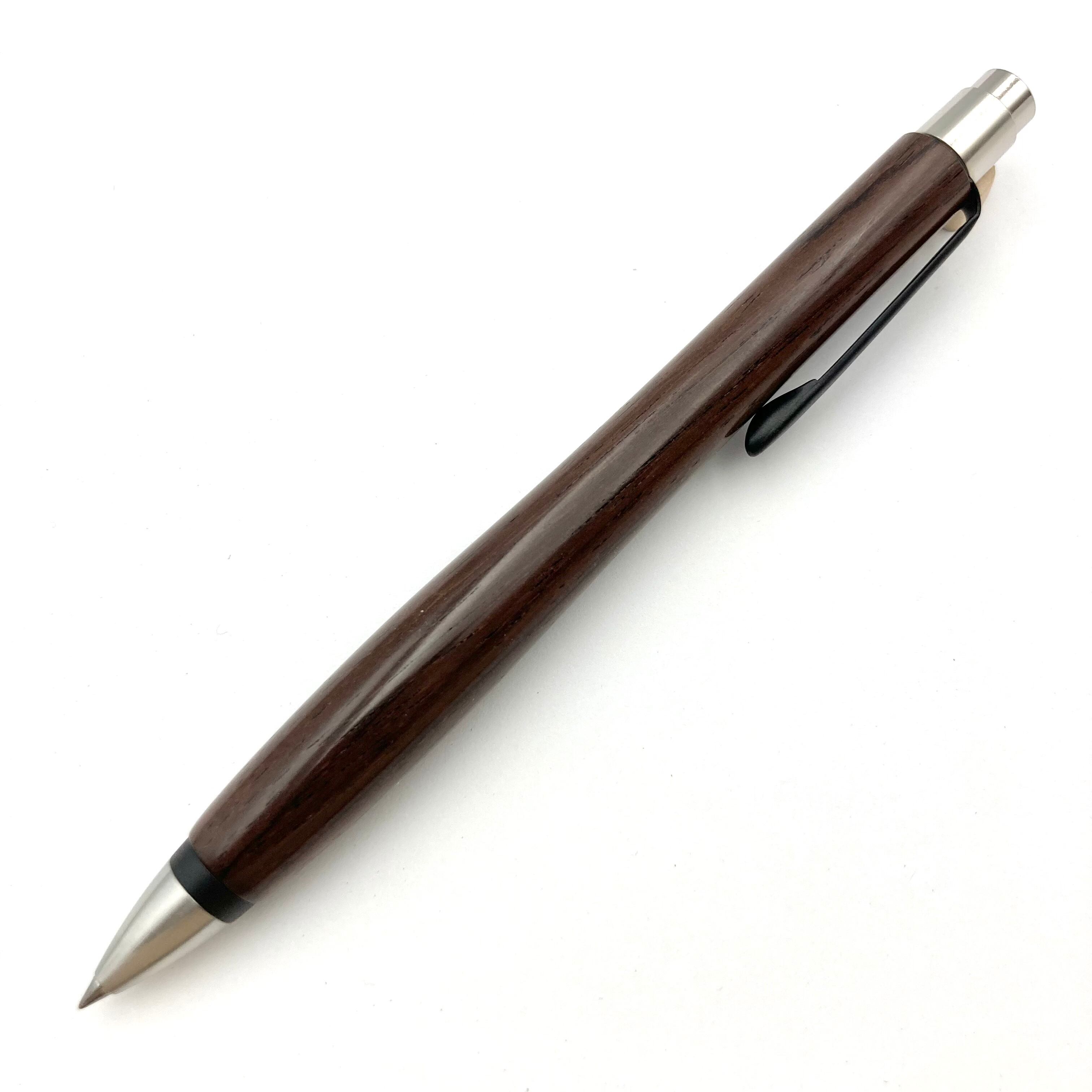 ボールペンのノックシステムは、ドイツ最高のクリックメカニズムを採用してあります。このメカニズムはユニークな機構のため、クリックしたときのカチカチ音が静かで、どんな場所でも気兼ねなく使うことができます。滑らかに動くこのプッシュ感覚を一度味わうと他には戻れなくなってしまうほどの魅力があります。 100分の1単位の加工精度で削り出されたペン先は、軸ブレも全くありません。