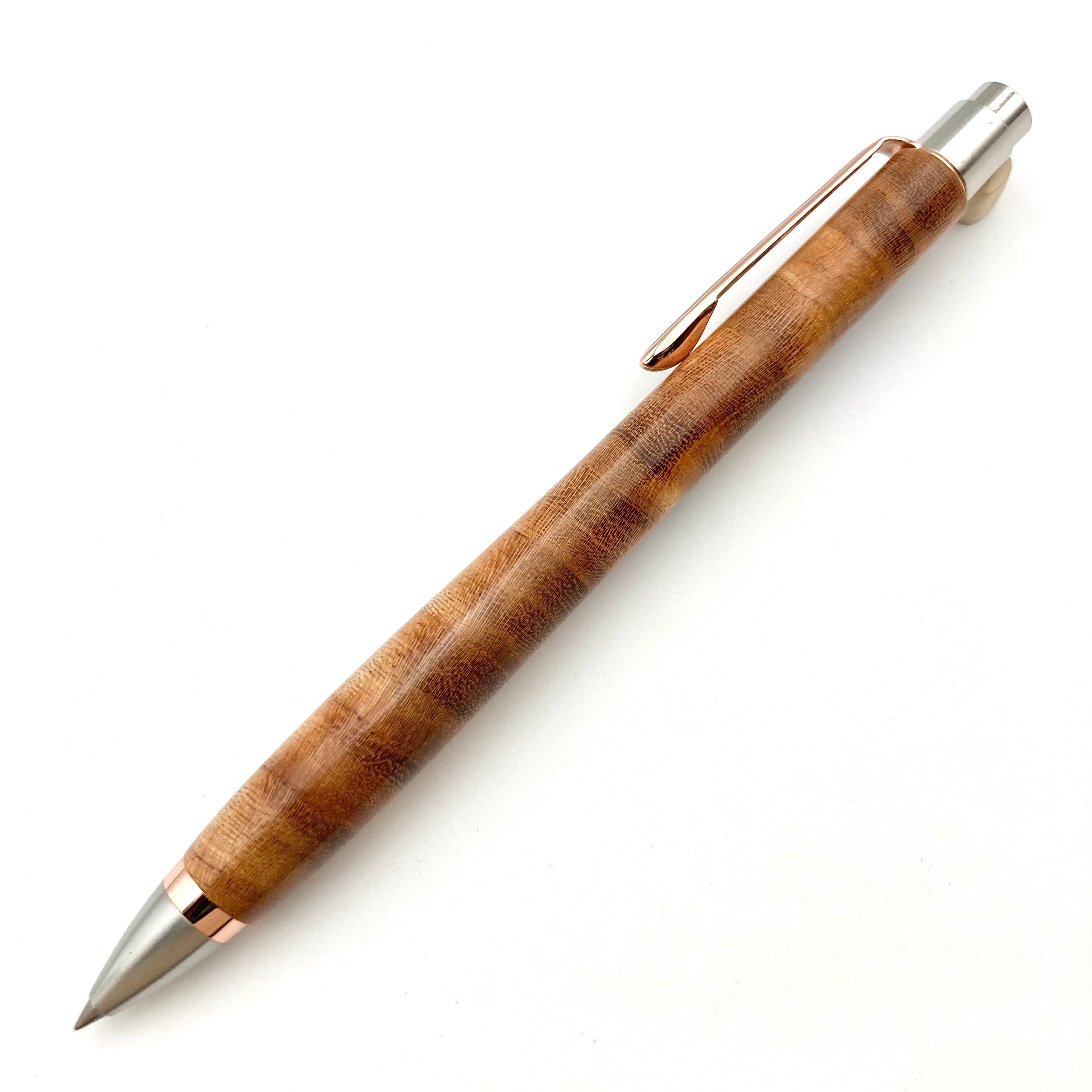 ボールペンのノックシステムは、ドイツ最高のクリックメカニズムを採用してあります。このメカニズムはユニークな機構のため、クリックしたときのカチカチ音が静かで、どんな場所でも気兼ねなく使うことができます。滑らかに動くこのプッシュ感覚を一度味わうと他には戻れなくなってしまうほどの魅力があります。 100分の1単位の加工精度で削り出されたペン先は、軸ブレも全くありません。