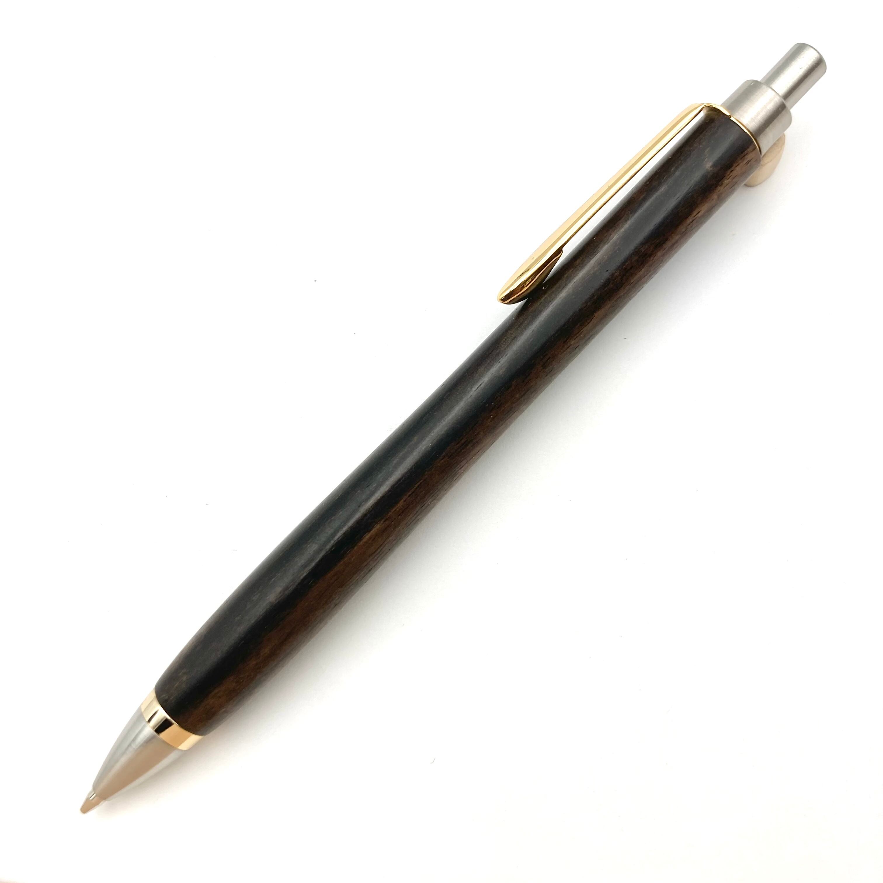 ペンシルは軸ブレが起こりにくい固定式口金を採用し、木の表情を最大限に楽しめる木軸の長さと、書き心地にこだわったバランスで金具を設計してあります。