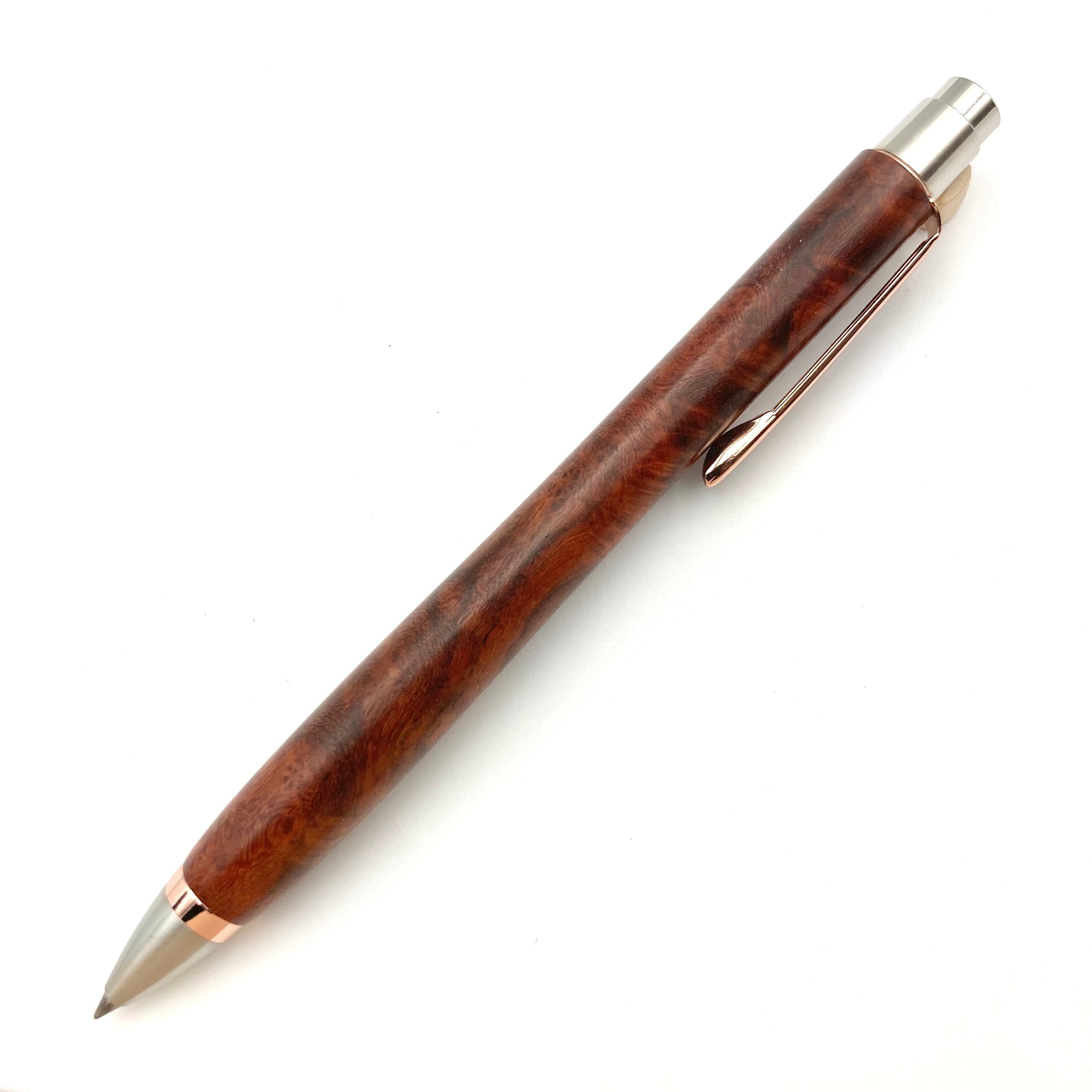 ボールペンのノックシステムは、ドイツ最高のクリックメカニズムを採用してあります。このメカニズムはユニークな機構のため、クリックしたときのカチカチ音が静かで、どんな場所でも気兼ねなく使うことができます。滑らかに動くこのプッシュ感覚を一度味わうと他には戻れなくなってしまうほどの魅力があります。 100分の1単位の加工精度で削り出されたペン先は、軸ブレも全くありません。