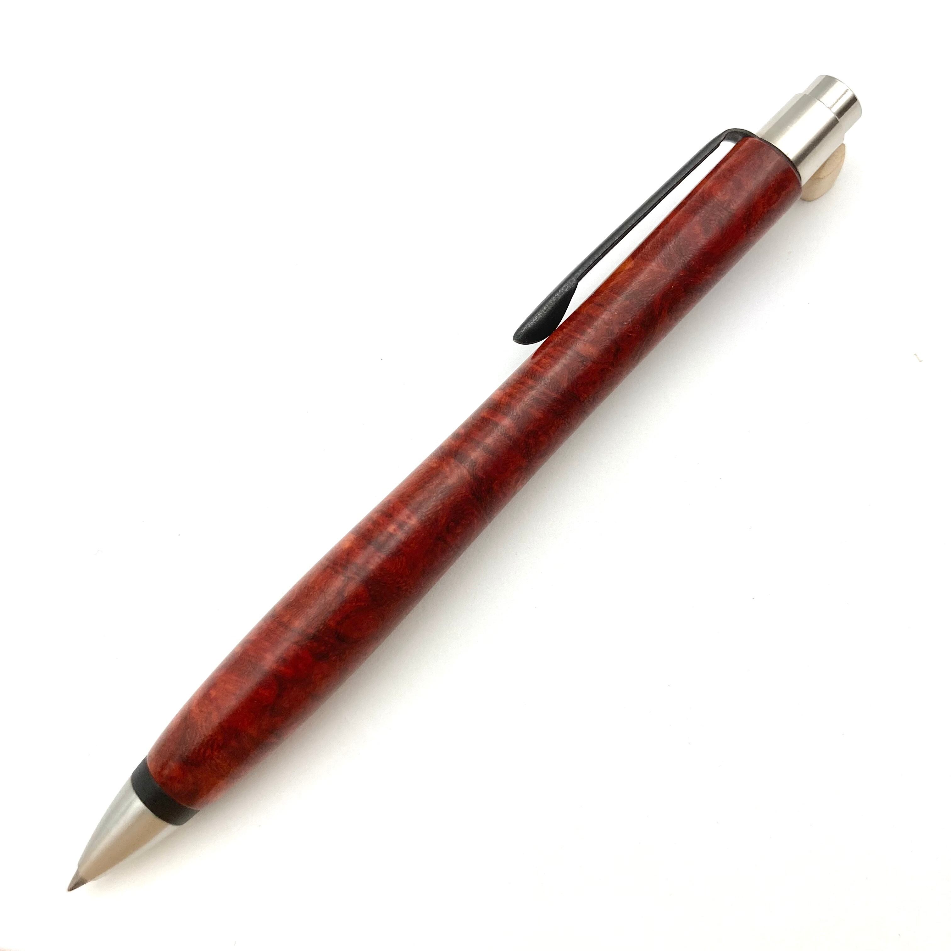 ボールペンのノックシステムは、ドイツ最高のクリックメカニズムを採用してあります。このメカニズムはユニークな機構のため、クリックしたときのカチカチ音が静かで、どんな場所でも気兼ねなく使うことができます。滑らかに動くこのプッシュ感覚を一度味わうと他には戻れなくなってしまうほどの魅力があります。 100分の1単位の加工精度で削り出されたペン先は、軸ブレも全くありません。
