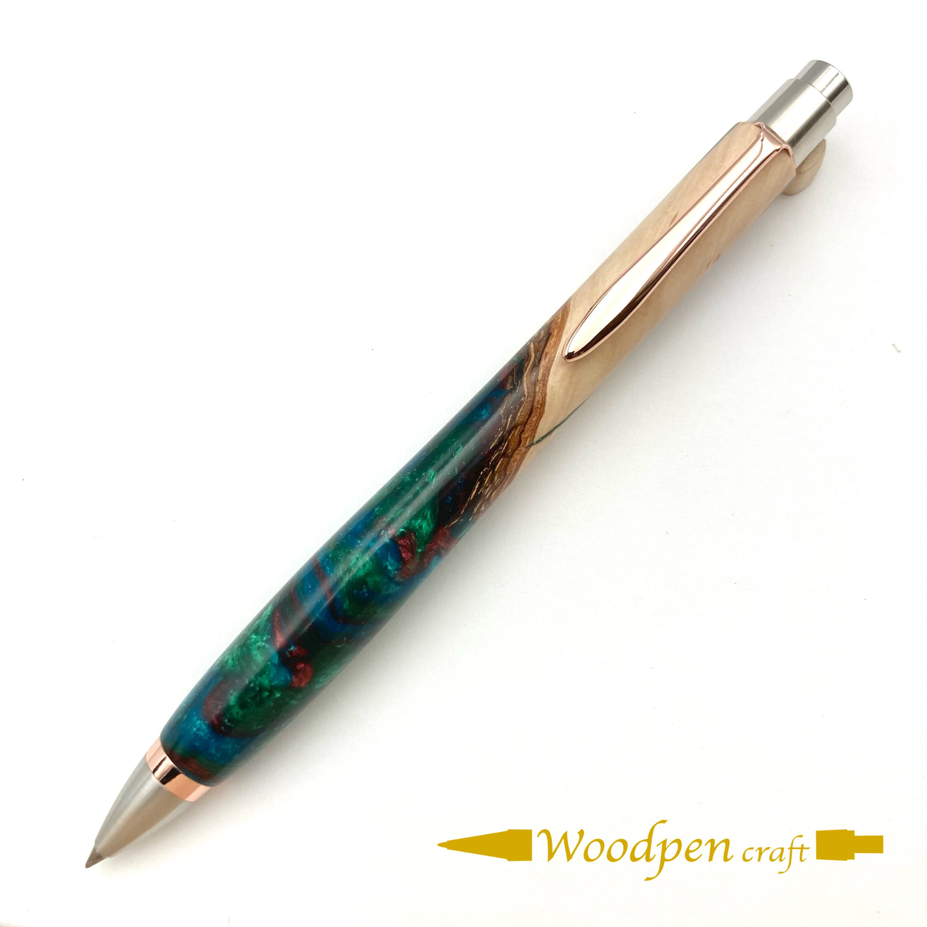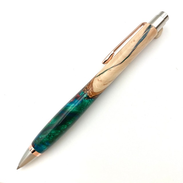 ボールペンのノックシステムは、ドイツ最高のクリックメカニズムを採用してあります。このメカニズムはユニークな機構のため、クリックしたときのカチカチ音が静かで、どんな場所でも気兼ねなく使うことができます。滑らかに動くこのプッシュ感覚を一度味わうと他には戻れなくなってしまうほどの魅力があります。 100分の1単位の加工精度で削り出されたペン先は、軸ブレも全くありません。