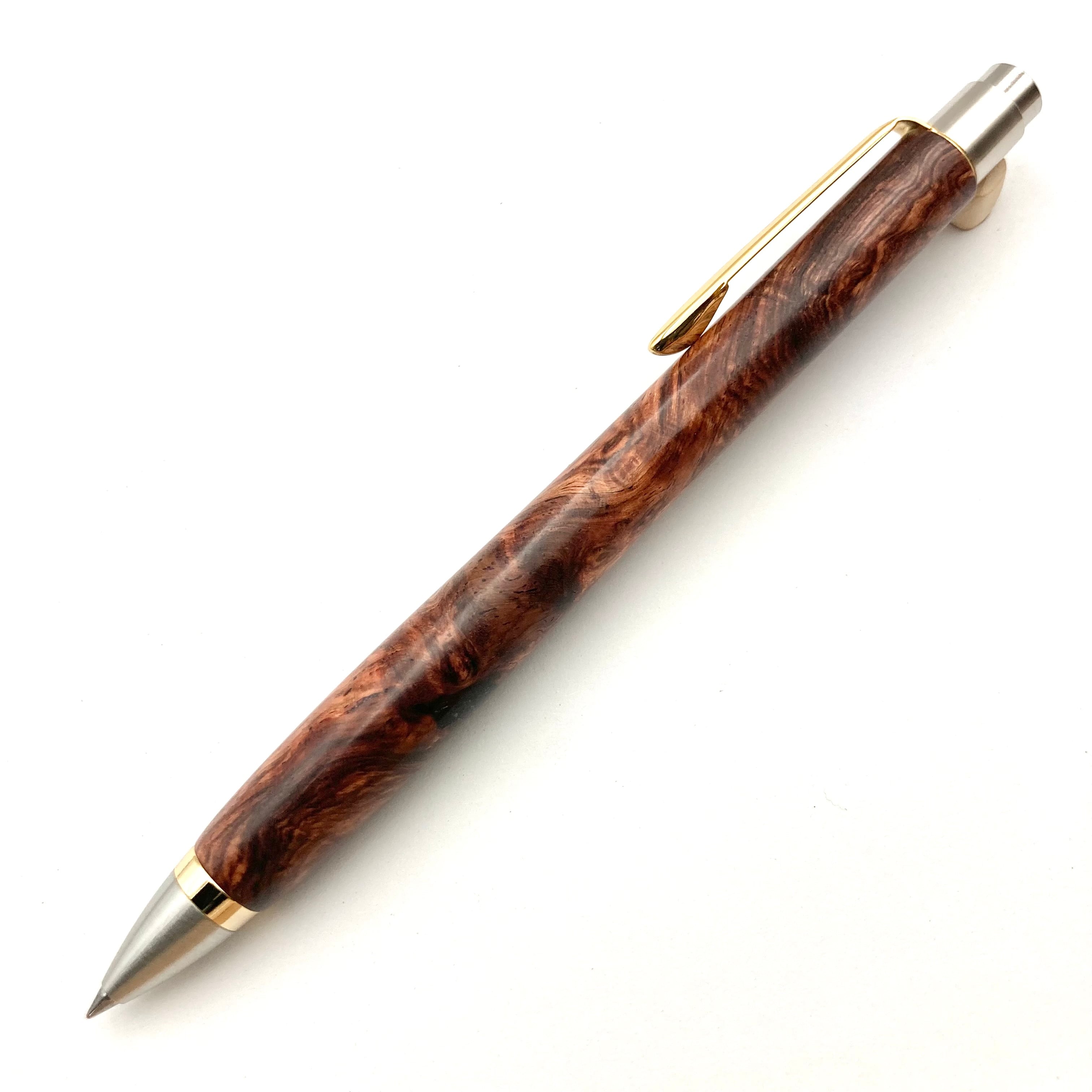 ボールペンのノックシステムは、ドイツ最高のクリックメカニズムを採用してあります。このメカニズムはユニークな機構のため、クリックしたときのカチカチ音が静かで、どんな場所でも気兼ねなく使うことができます。滑らかに動くこのプッシュ感覚を一度味わうと他には戻れなくなってしまうほどの魅力があります。 100分の1単位の加工精度で削り出されたペン先は、軸ブレも全くありません。