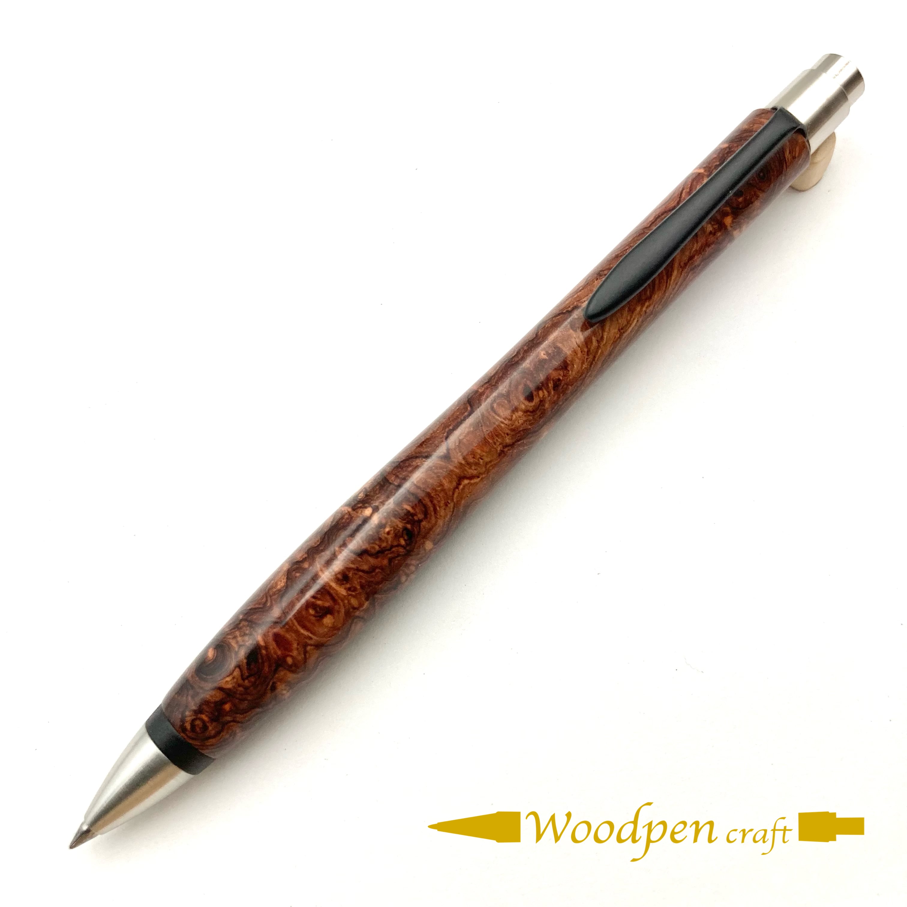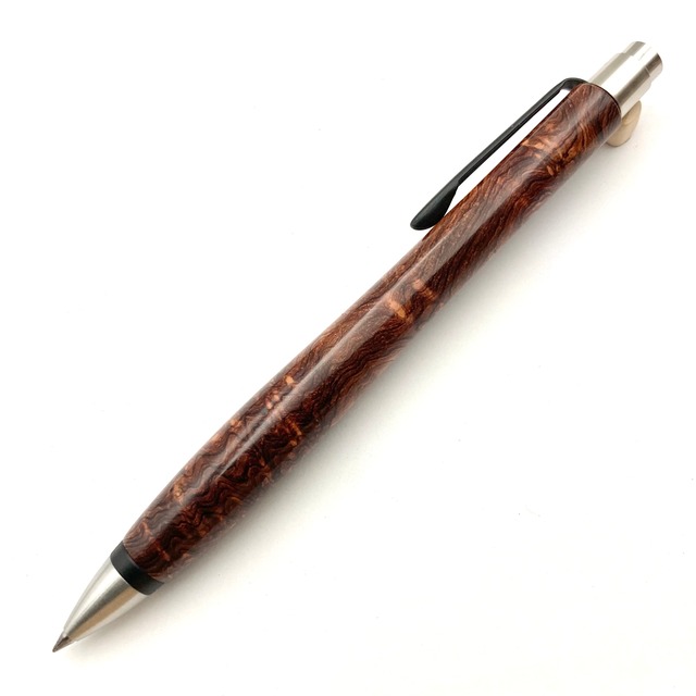 ボールペンのノックシステムは、ドイツ最高のクリックメカニズムを採用してあります。このメカニズムはユニークな機構のため、クリックしたときのカチカチ音が静かで、どんな場所でも気兼ねなく使うことができます。滑らかに動くこのプッシュ感覚を一度味わうと他には戻れなくなってしまうほどの魅力があります。 100分の1単位の加工精度で削り出されたペン先は、軸ブレも全くありません。