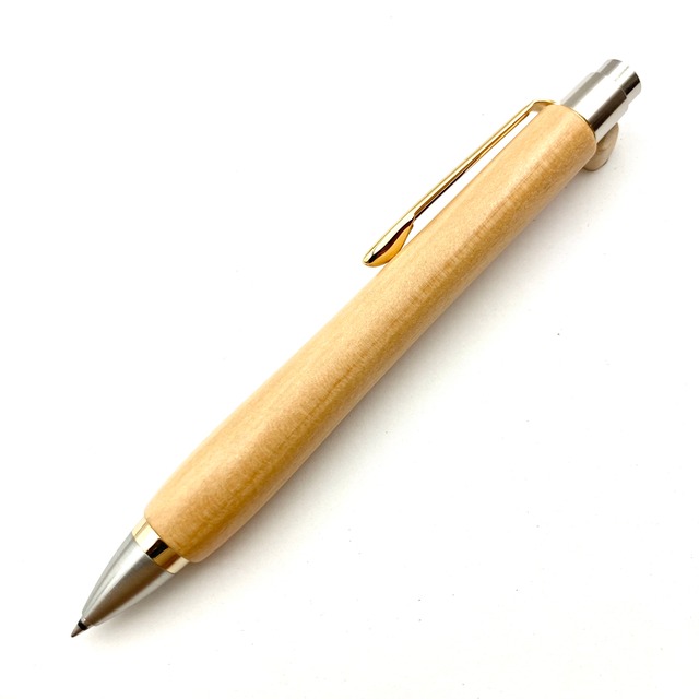 ボールペンのノックシステムは、ドイツ最高のクリックメカニズムを採用してあります。このメカニズムはユニークな機構のため、クリックしたときのカチカチ音が静かで、どんな場所でも気兼ねなく使うことができます。滑らかに動くこのプッシュ感覚を一度味わうと他には戻れなくなってしまうほどの魅力があります。 100分の1単位の加工精度で削り出されたペン先は、軸ブレも全くありません。