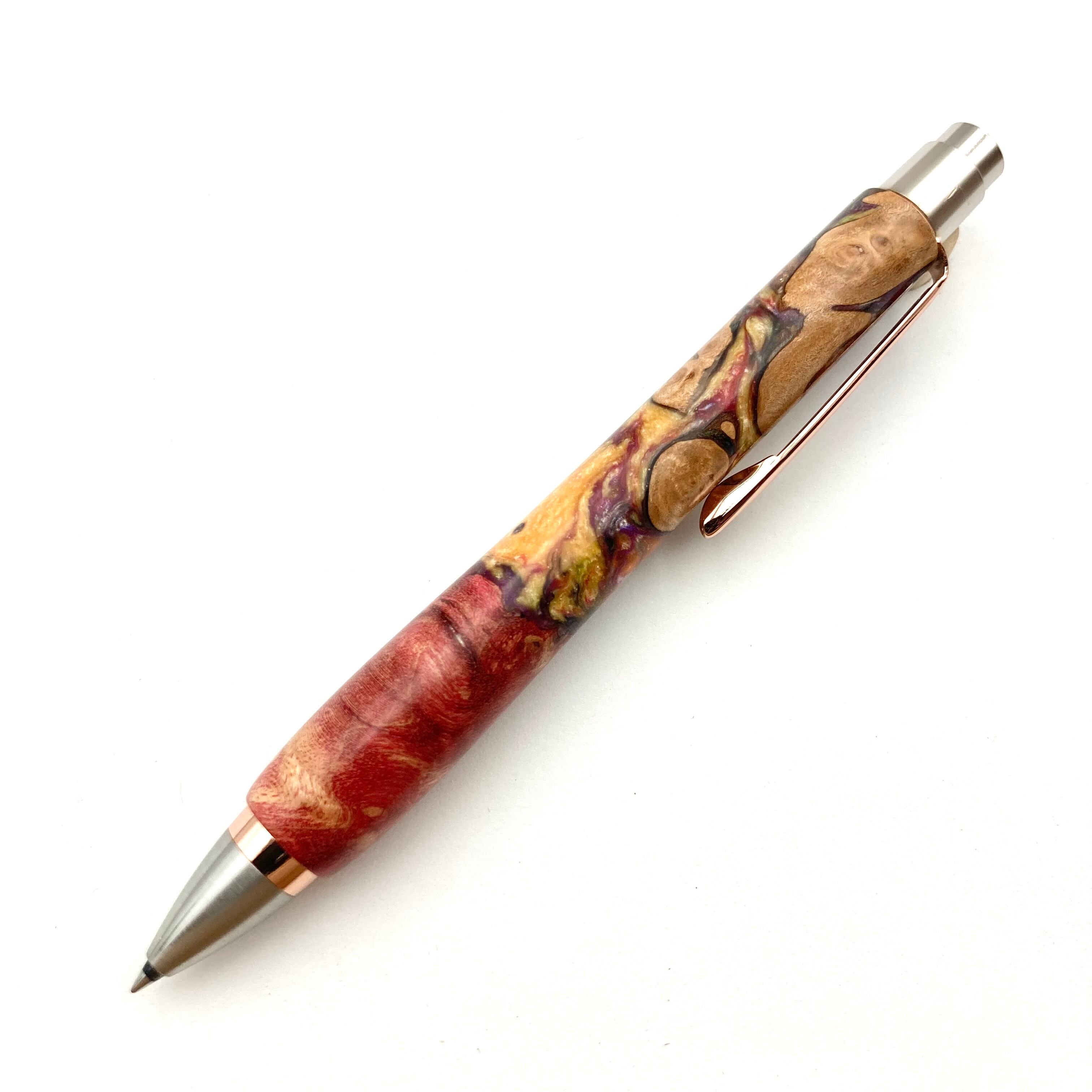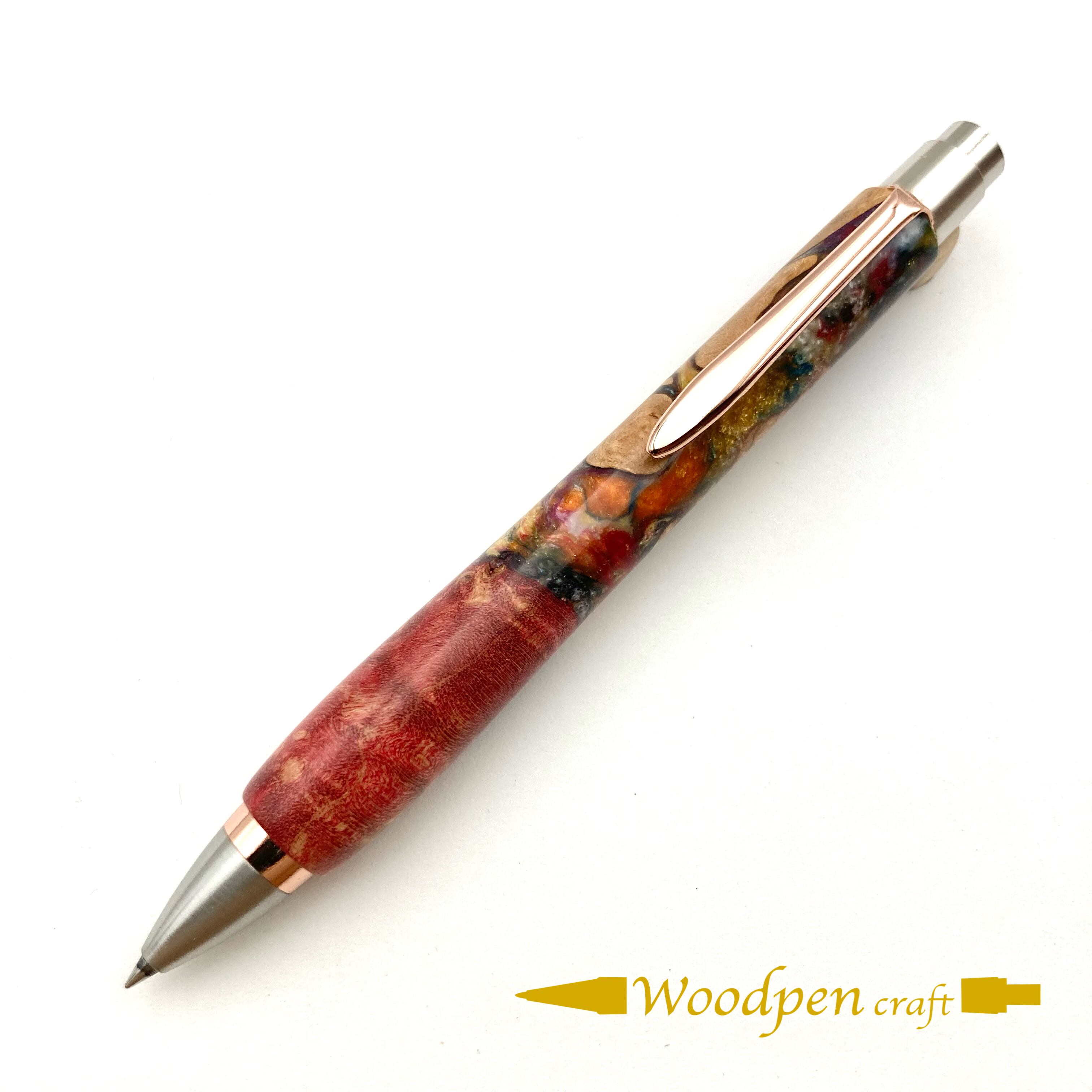 ボールペンのノックシステムは、ドイツ最高のクリックメカニズムを採用してあります。このメカニズムはユニークな機構のため、クリックしたときのカチカチ音が静かで、どんな場所でも気兼ねなく使うことができます。滑らかに動くこのプッシュ感覚を一度味わうと他には戻れなくなってしまうほどの魅力があります。 100分の1単位の加工精度で削り出されたペン先は、軸ブレも全くありません。
