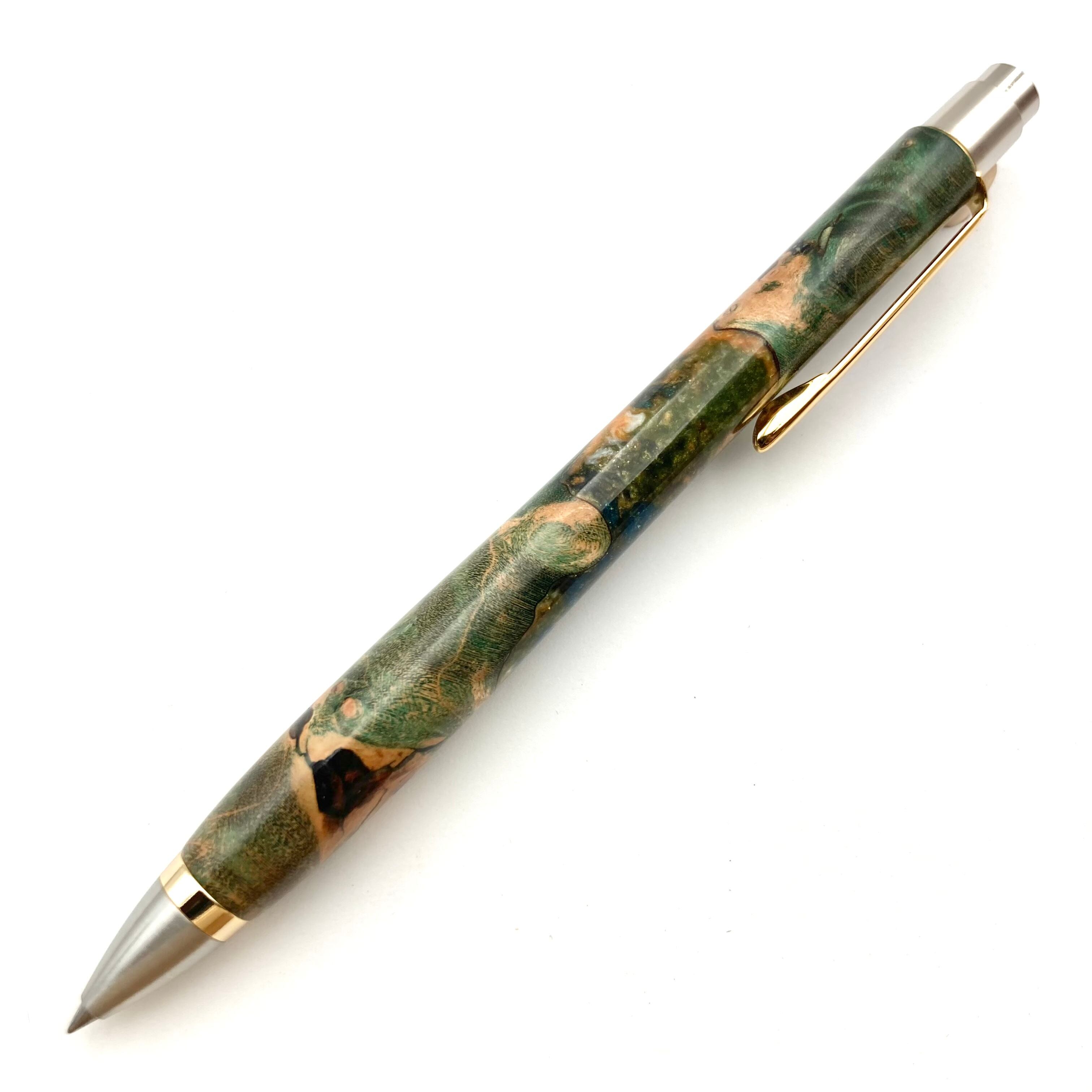 ボールペンのノックシステムは、ドイツ最高のクリックメカニズムを採用してあります。このメカニズムはユニークな機構のため、クリックしたときのカチカチ音が静かで、どんな場所でも気兼ねなく使うことができます。滑らかに動くこのプッシュ感覚を一度味わうと他には戻れなくなってしまうほどの魅力があります。 100分の1単位の加工精度で削り出されたペン先は、軸ブレも全くありません。