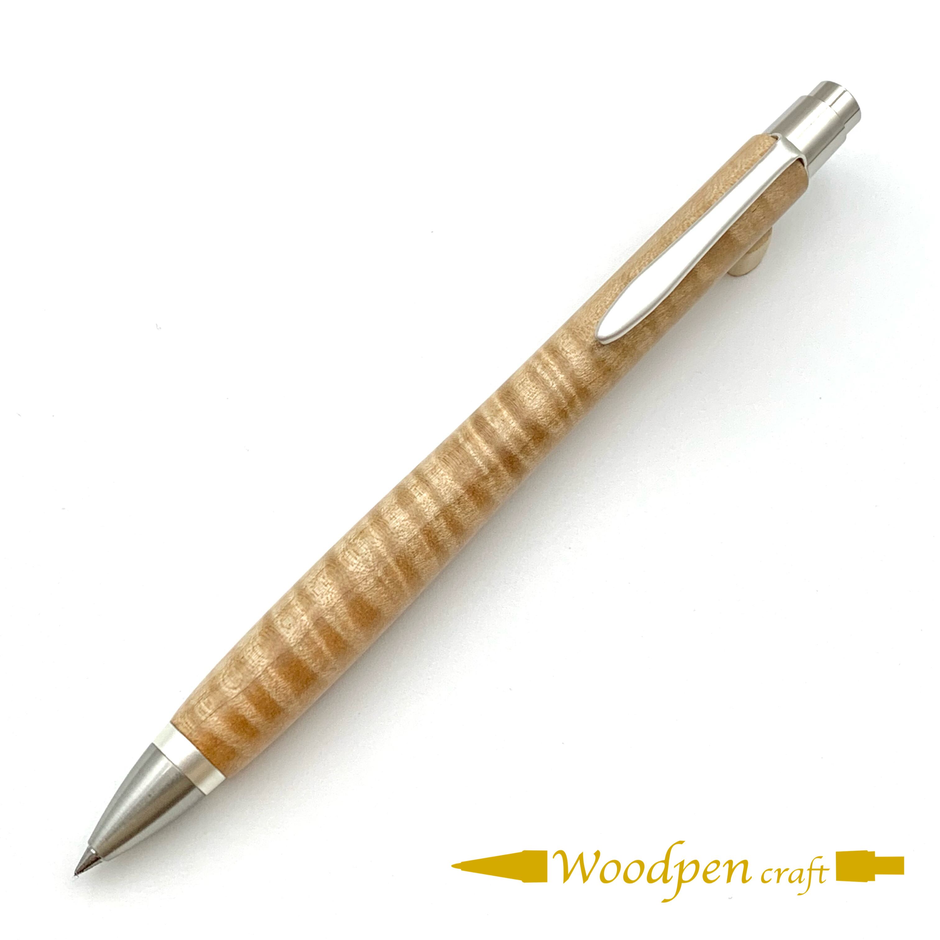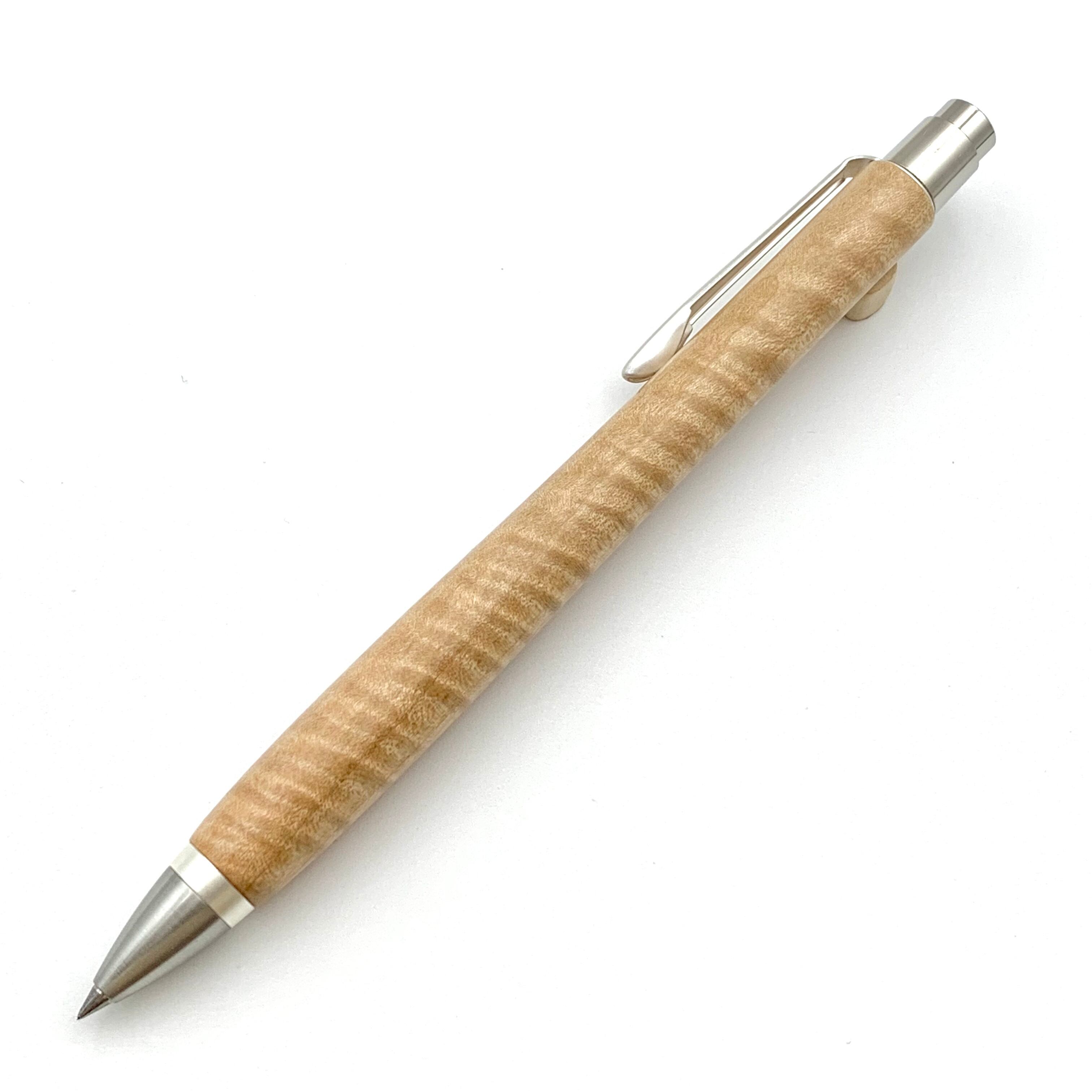 ボールペンのノックシステムは、ドイツ最高のクリックメカニズムを採用してあります。このメカニズムはユニークな機構のため、クリックしたときのカチカチ音が静かで、どんな場所でも気兼ねなく使うことができます。滑らかに動くこのプッシュ感覚を一度味わうと他には戻れなくなってしまうほどの魅力があります。 100分の1単位の加工精度で削り出されたペン先は、軸ブレも全くありません。