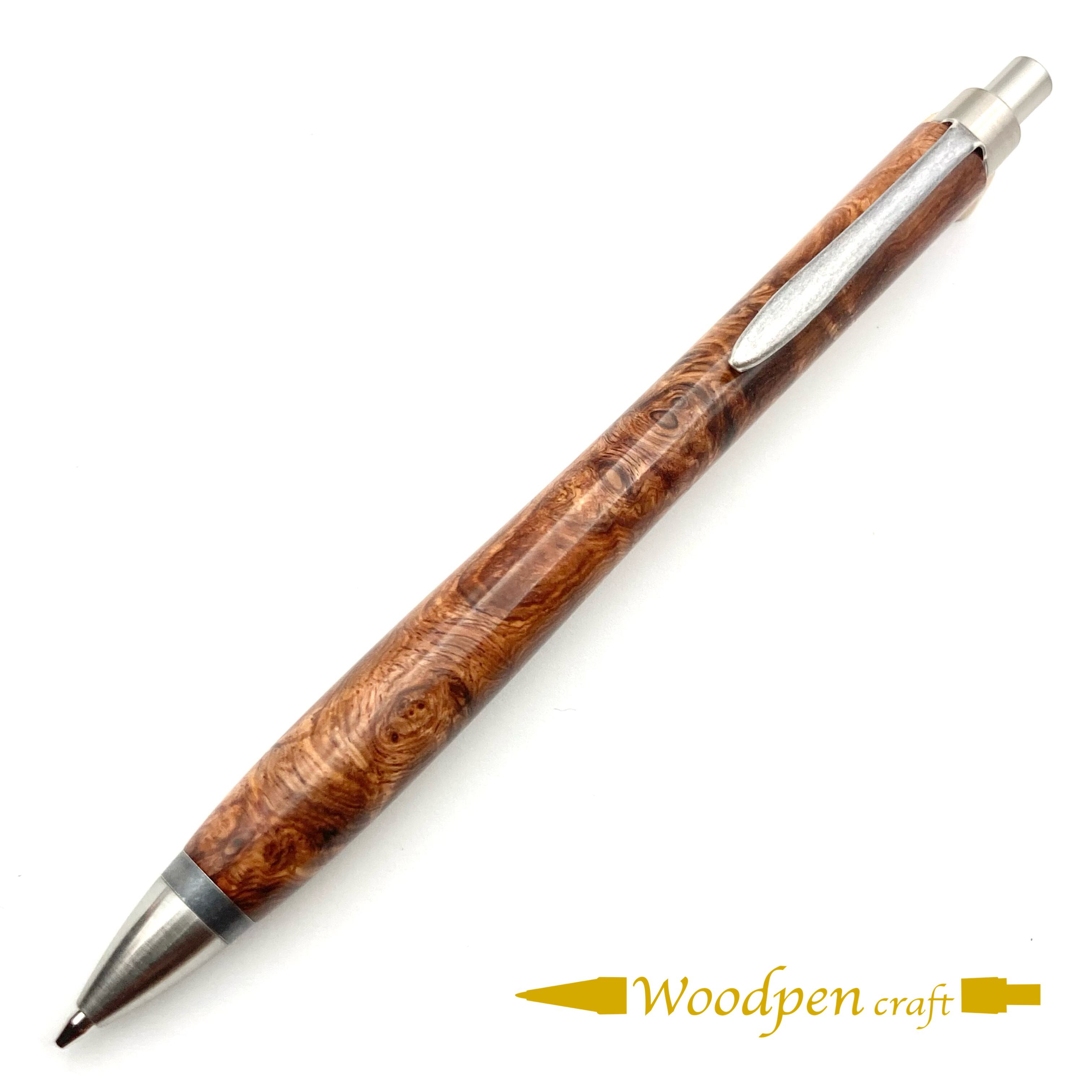 ペンシルは軸ブレが起こりにくい固定式口金を採用し、木の表情を最大限に楽しめる木軸の長さと、書き心地にこだわったバランスで金具を設計してあります。