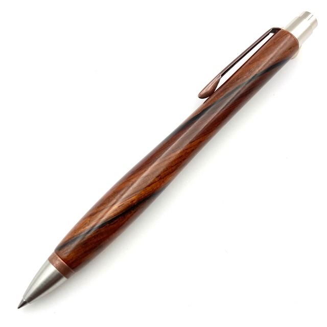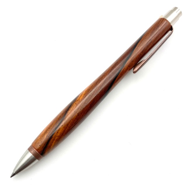 ボールペンのノックシステムは、ドイツ最高のクリックメカニズムを採用してあります。このメカニズムはユニークな機構のため、クリックしたときのカチカチ音が静かで、どんな場所でも気兼ねなく使うことができます。滑らかに動くこのプッシュ感覚を一度味わうと他には戻れなくなってしまうほどの魅力があります。 100分の1単位の加工精度で削り出されたペン先は、軸ブレも全くありません。