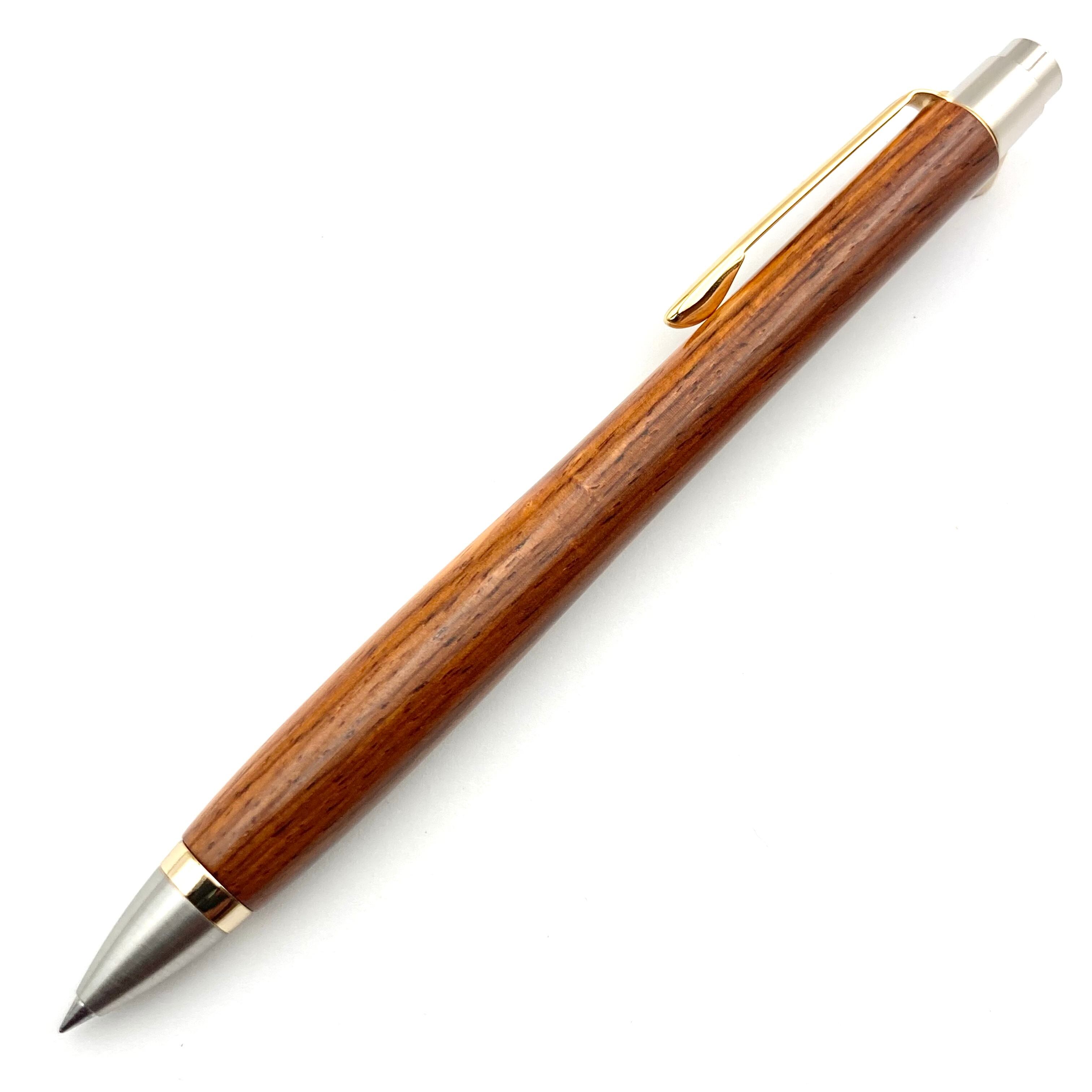 ボールペンのノックシステムは、ドイツ最高のクリックメカニズムを採用してあります。このメカニズムはユニークな機構のため、クリックしたときのカチカチ音が静かで、どんな場所でも気兼ねなく使うことができます。滑らかに動くこのプッシュ感覚を一度味わうと他には戻れなくなってしまうほどの魅力があります。 100分の1単位の加工精度で削り出されたペン先は、軸ブレも全くありません。