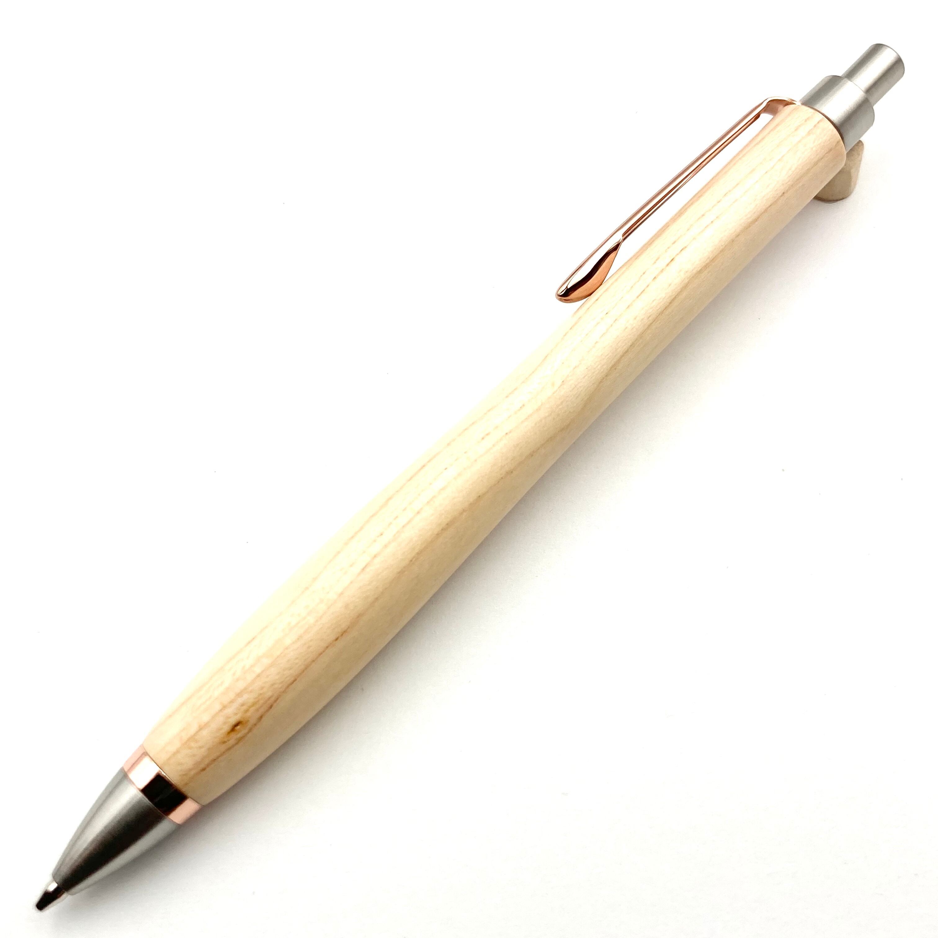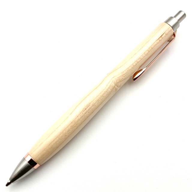 ペンシルは軸ブレが起こりにくい固定式口金を採用し、木の表情を最大限に楽しめる木軸の長さと、書き心地にこだわったバランスで金具を設計してあります。