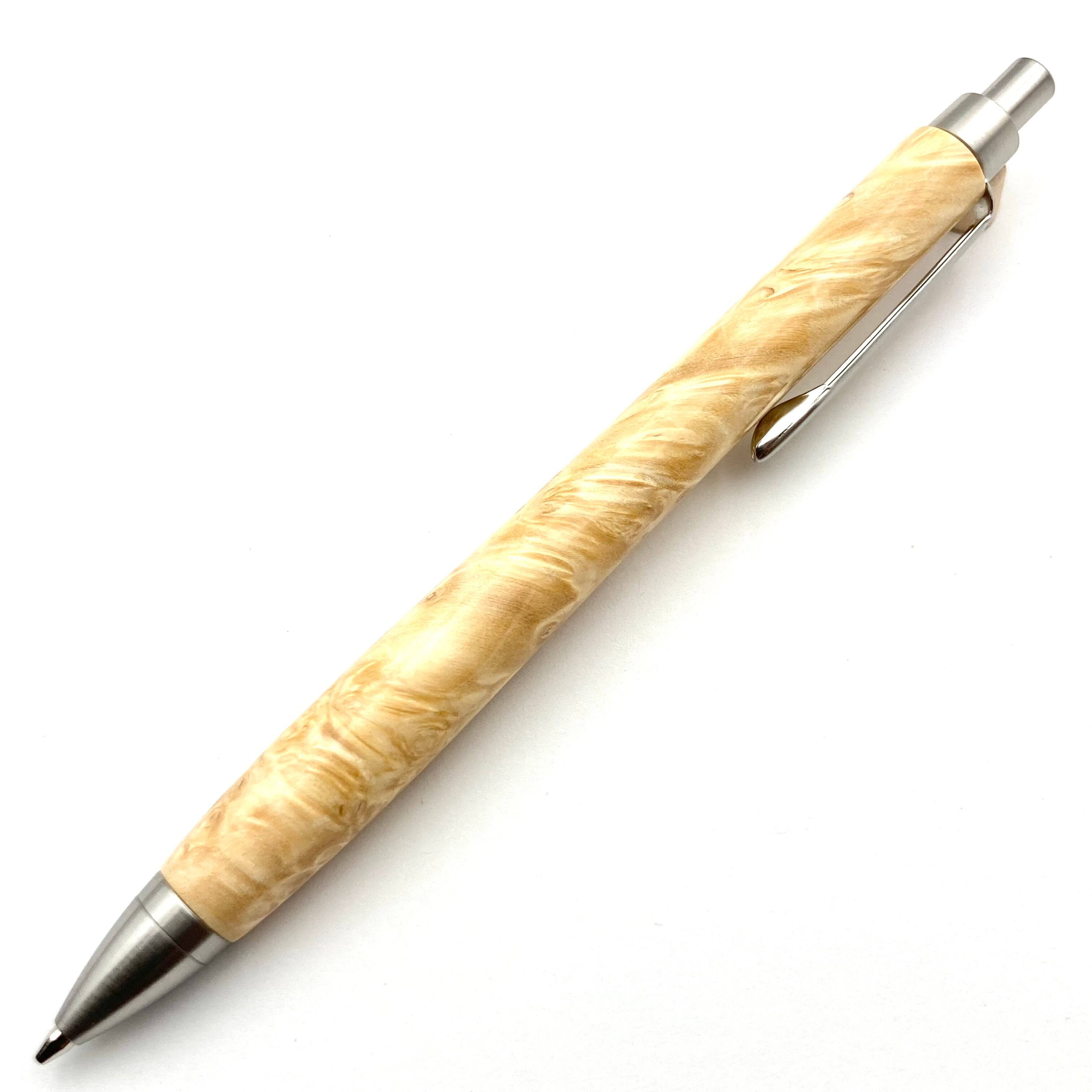 ペンシルは軸ブレが起こりにくい固定式口金を採用し、木の表情を最大限に楽しめる木軸の長さと、書き心地にこだわったバランスで金具を設計してあります。
