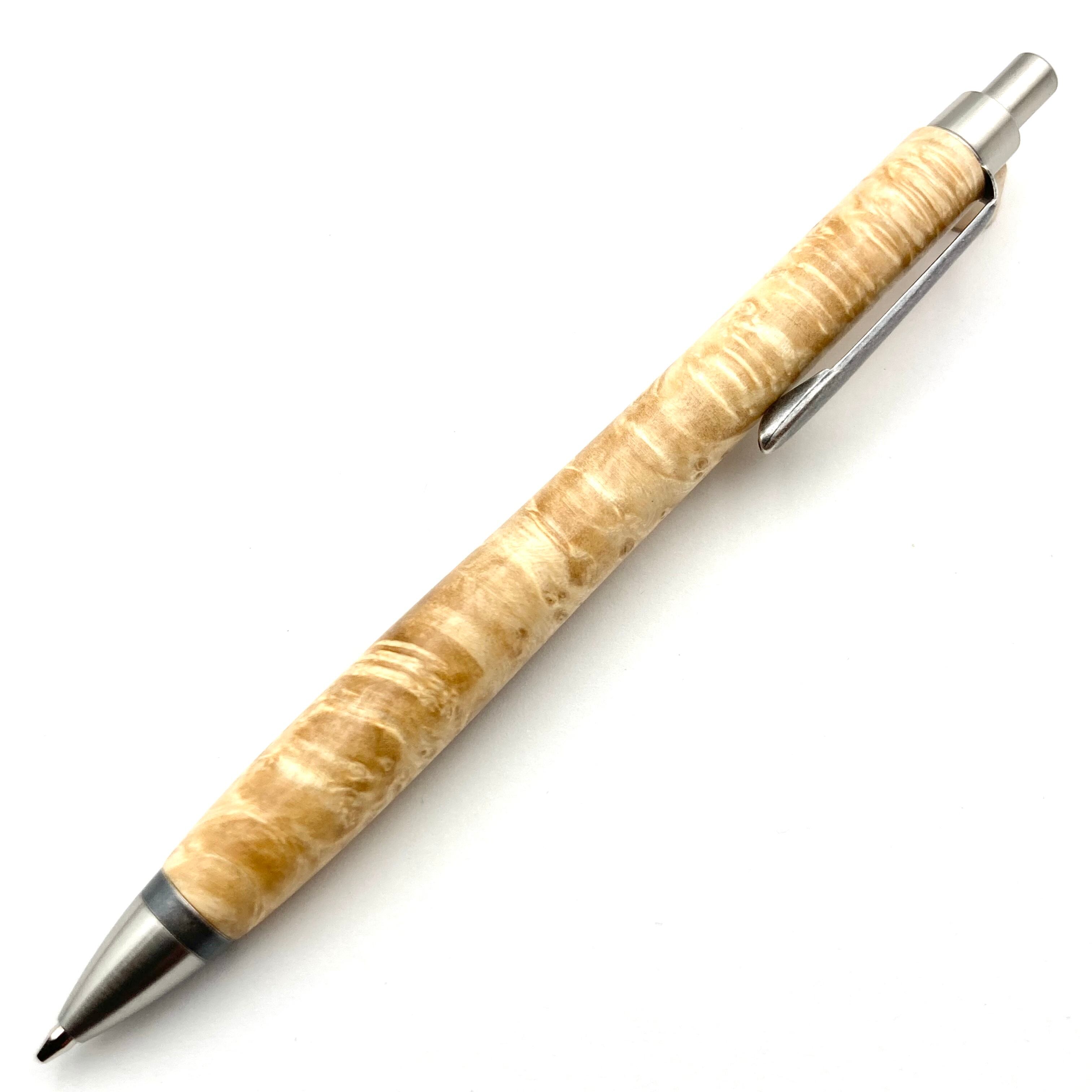 ペンシルは軸ブレが起こりにくい固定式口金を採用し、木の表情を最大限に楽しめる木軸の長さと、書き心地にこだわったバランスで金具を設計してあります。