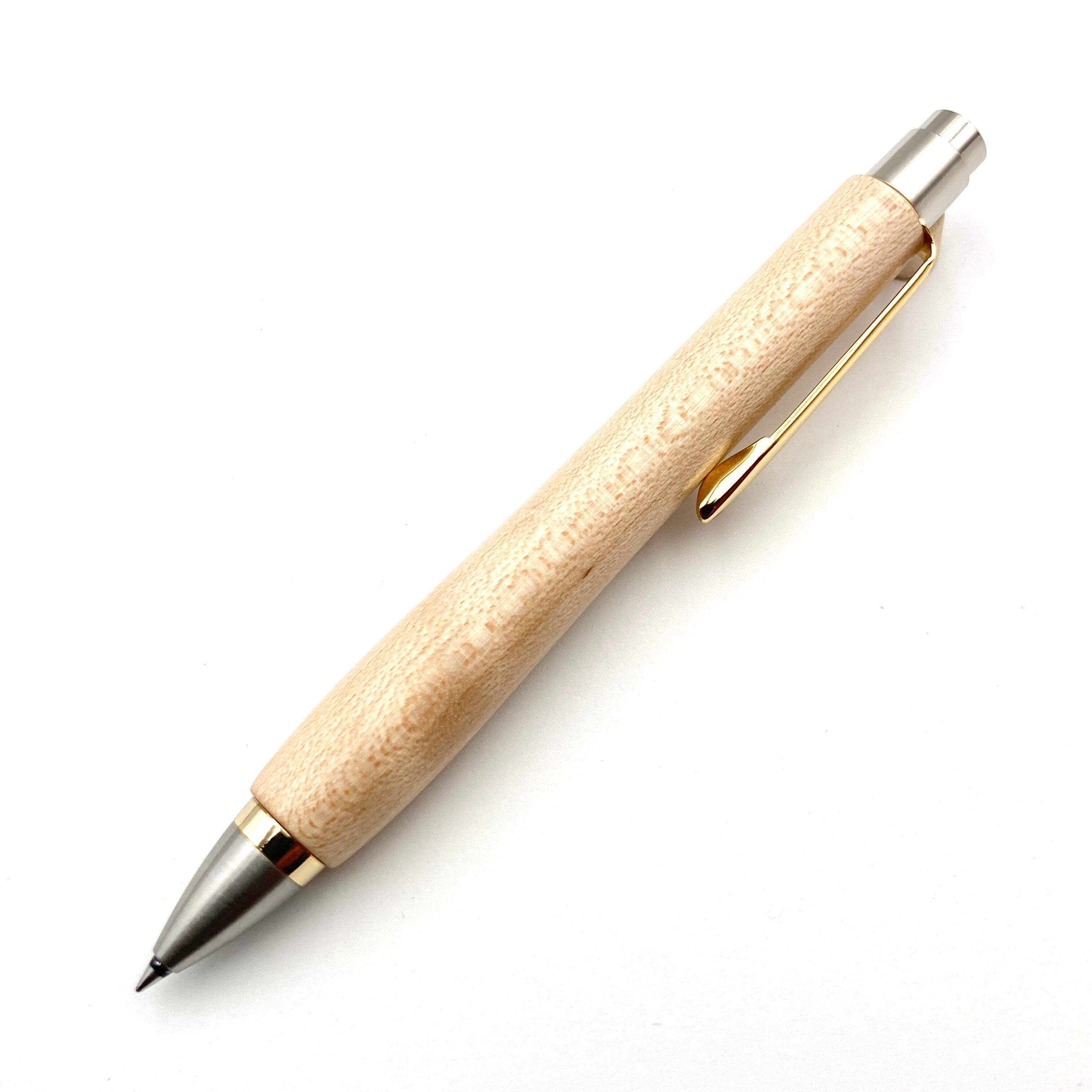 ボールペンのノックシステムは、ドイツ最高のクリックメカニズムを採用してあります。このメカニズムはユニークな機構のため、クリックしたときのカチカチ音が静かで、どんな場所でも気兼ねなく使うことができます。滑らかに動くこのプッシュ感覚を一度味わうと他には戻れなくなってしまうほどの魅力があります。 100分の1単位の加工精度で削り出されたペン先は、軸ブレも全くありません。