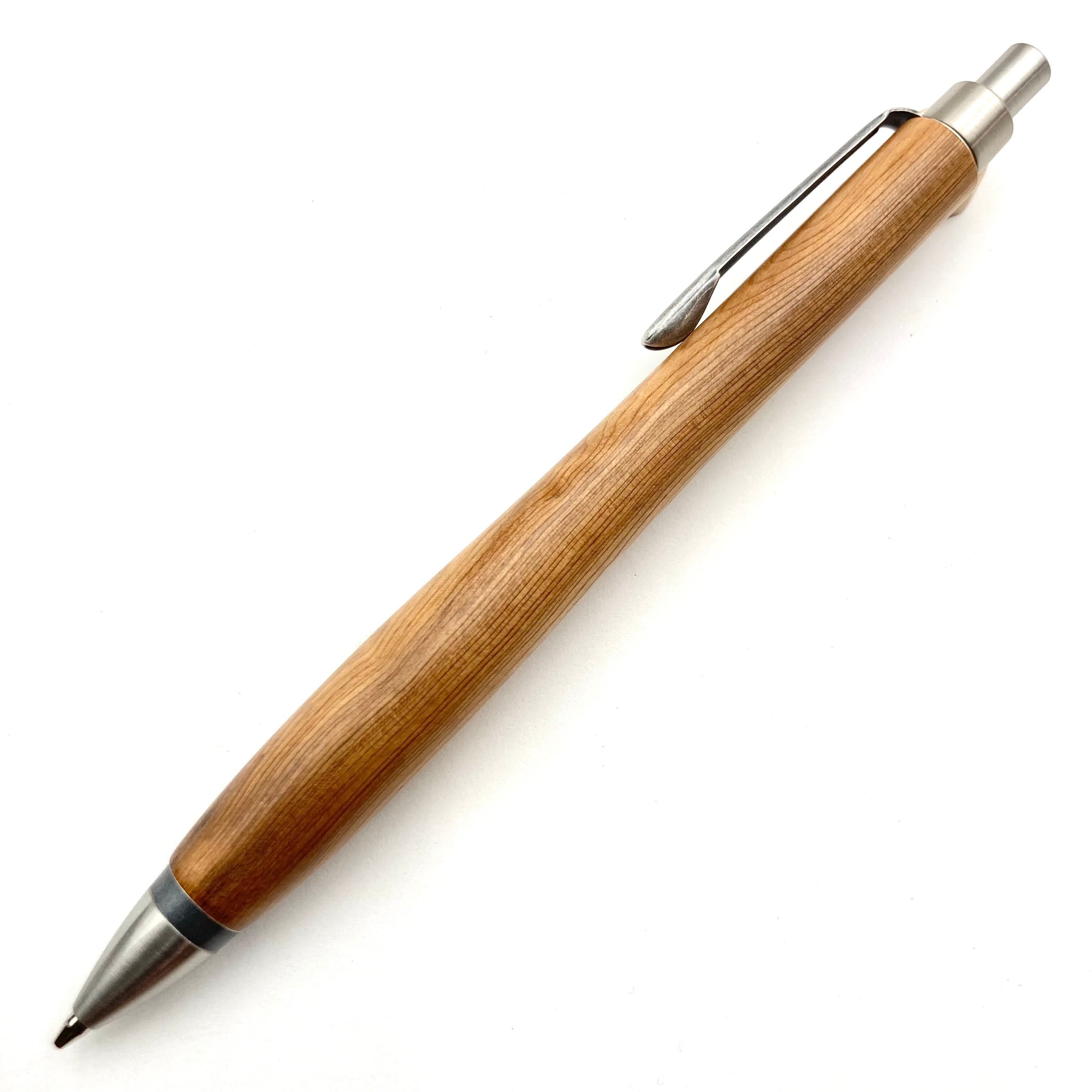 ペンシルは軸ブレが起こりにくい固定式口金を採用し、木の表情を最大限に楽しめる木軸の長さと、書き心地にこだわったバランスで金具を設計してあります。