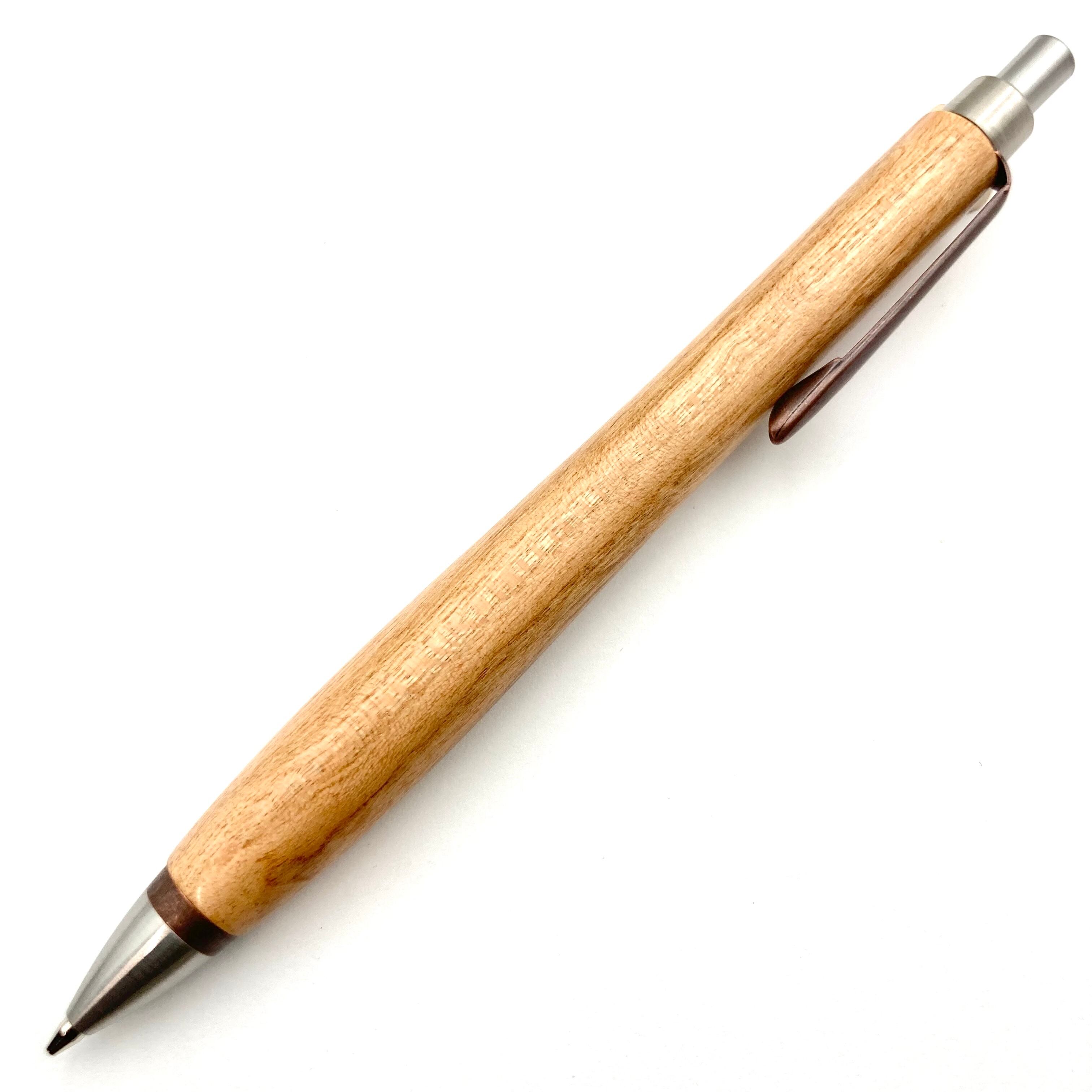 ペンシルは軸ブレが起こりにくい固定式口金を採用し、木の表情を最大限に楽しめる木軸の長さと、書き心地にこだわったバランスで金具を設計してあります。