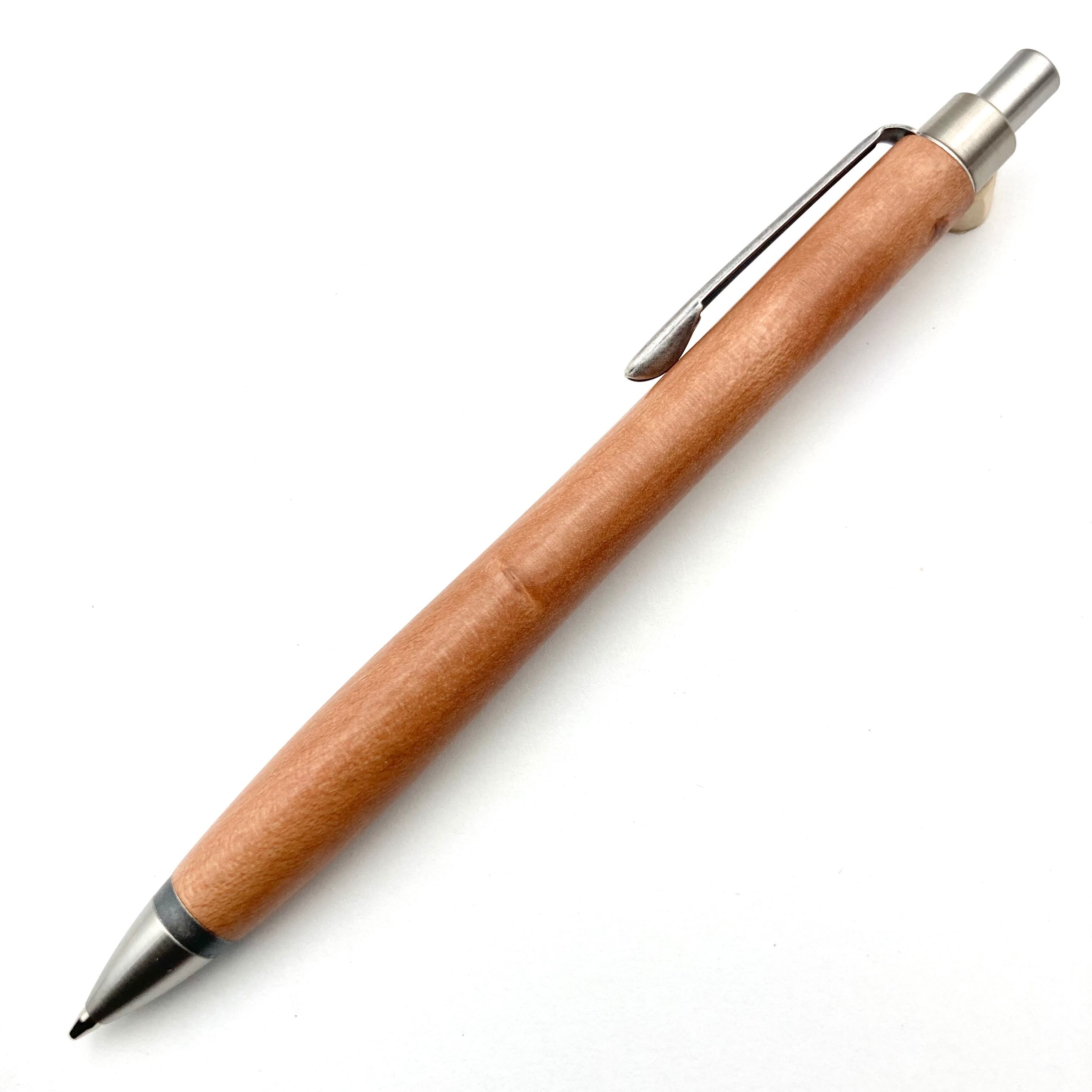 ペンシルは軸ブレが起こりにくい固定式口金を採用し、木の表情を最大限に楽しめる木軸の長さと、書き心地にこだわったバランスで金具を設計してあります。