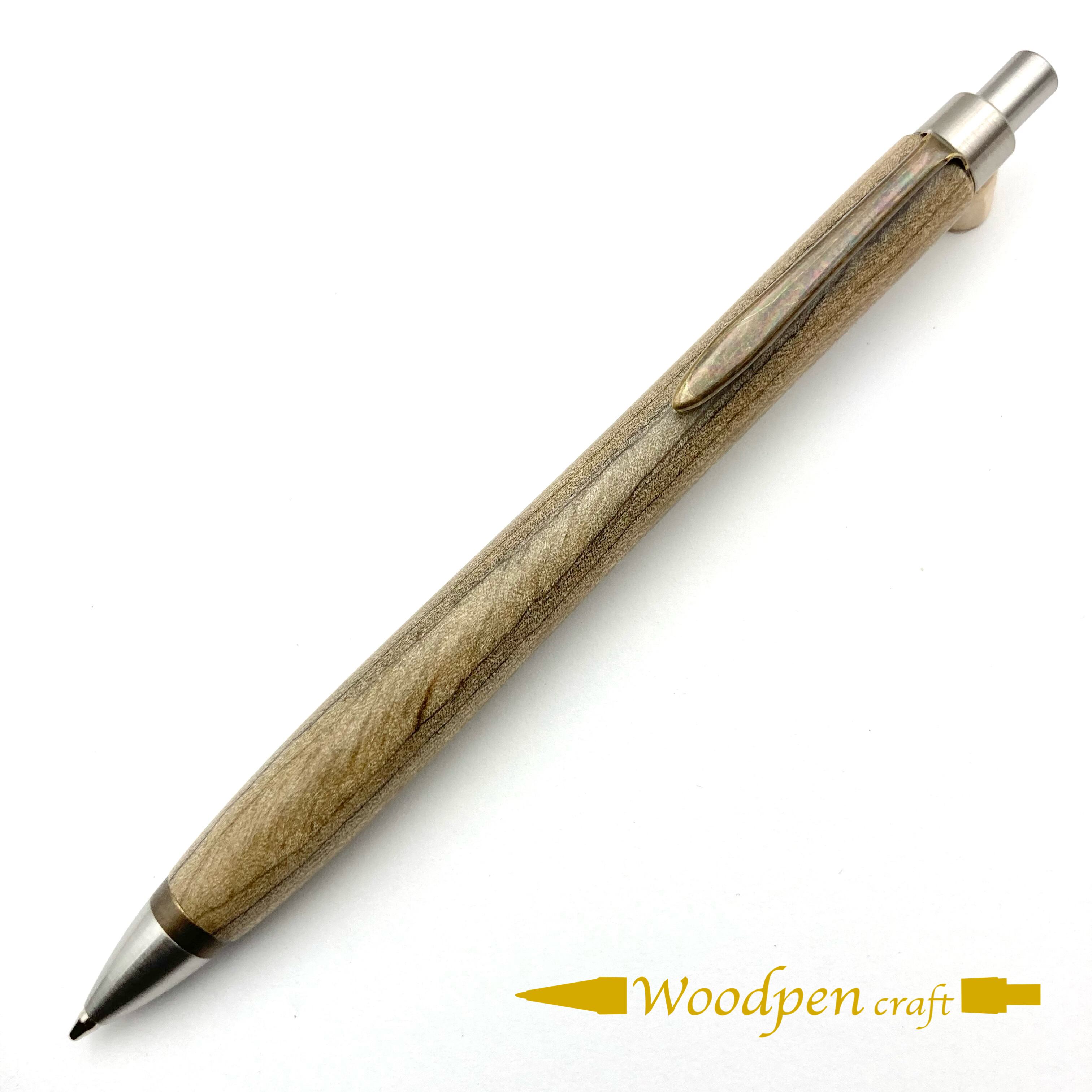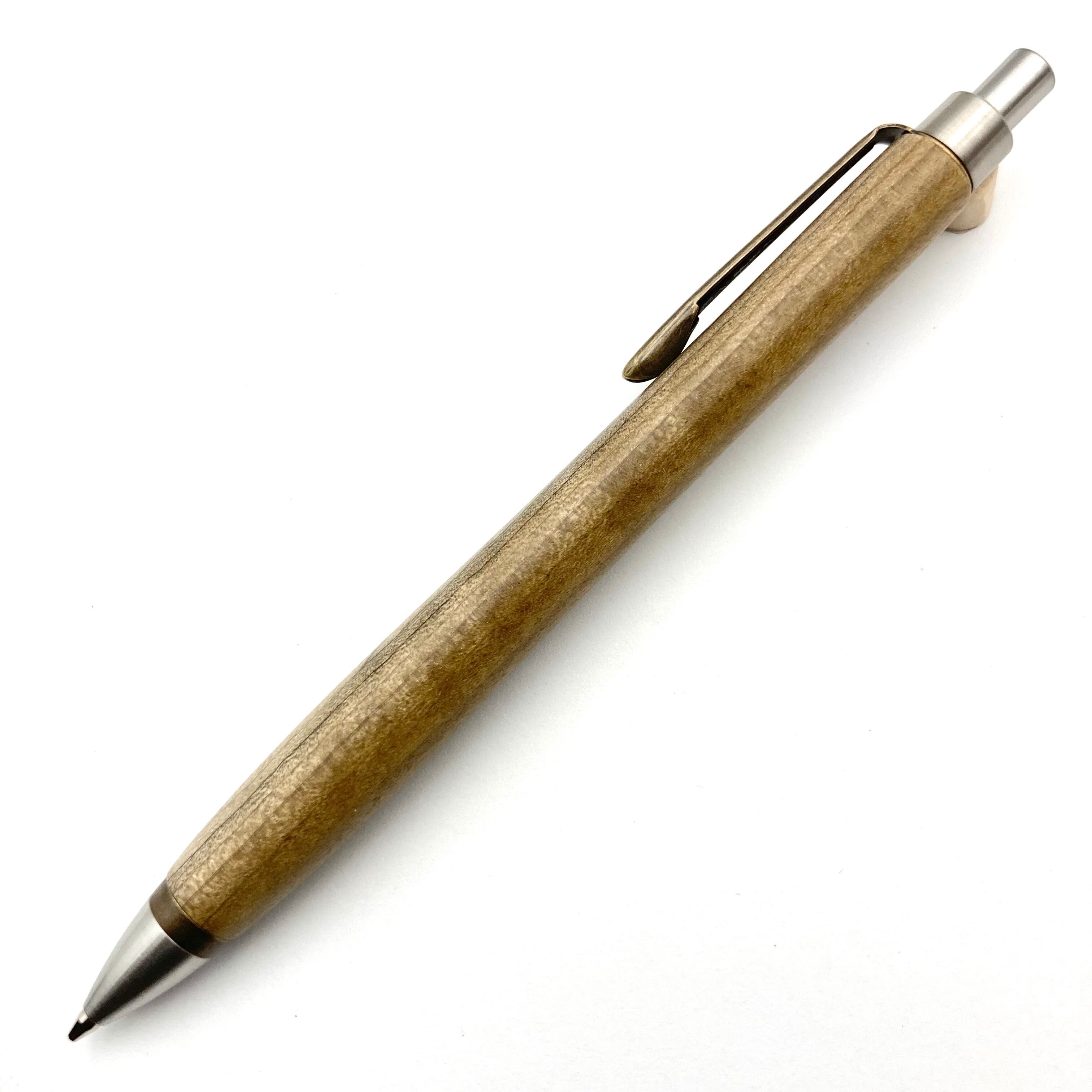ペンシルは軸ブレが起こりにくい固定式口金を採用し、木の表情を最大限に楽しめる木軸の長さと、書き心地にこだわったバランスで金具を設計してあります。
