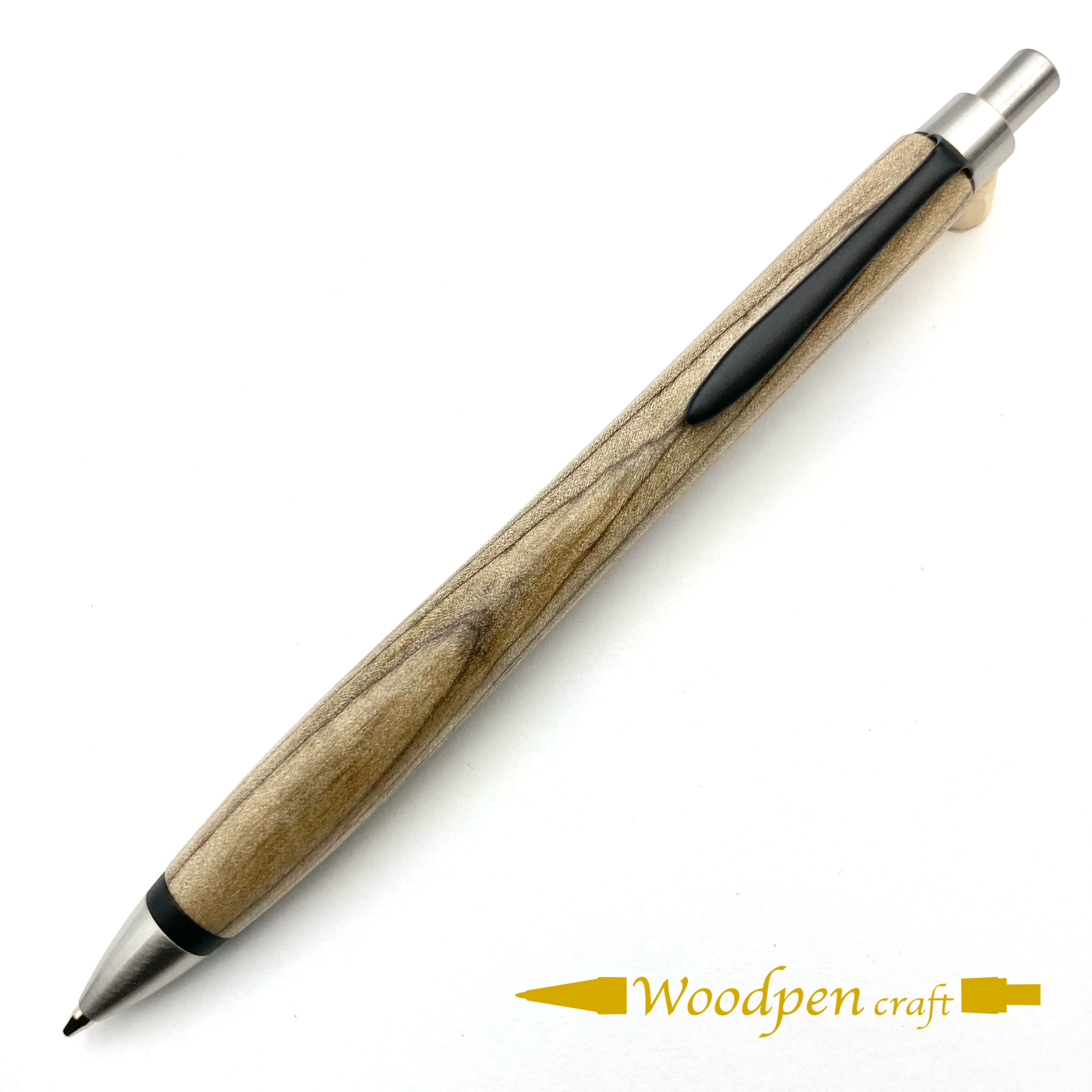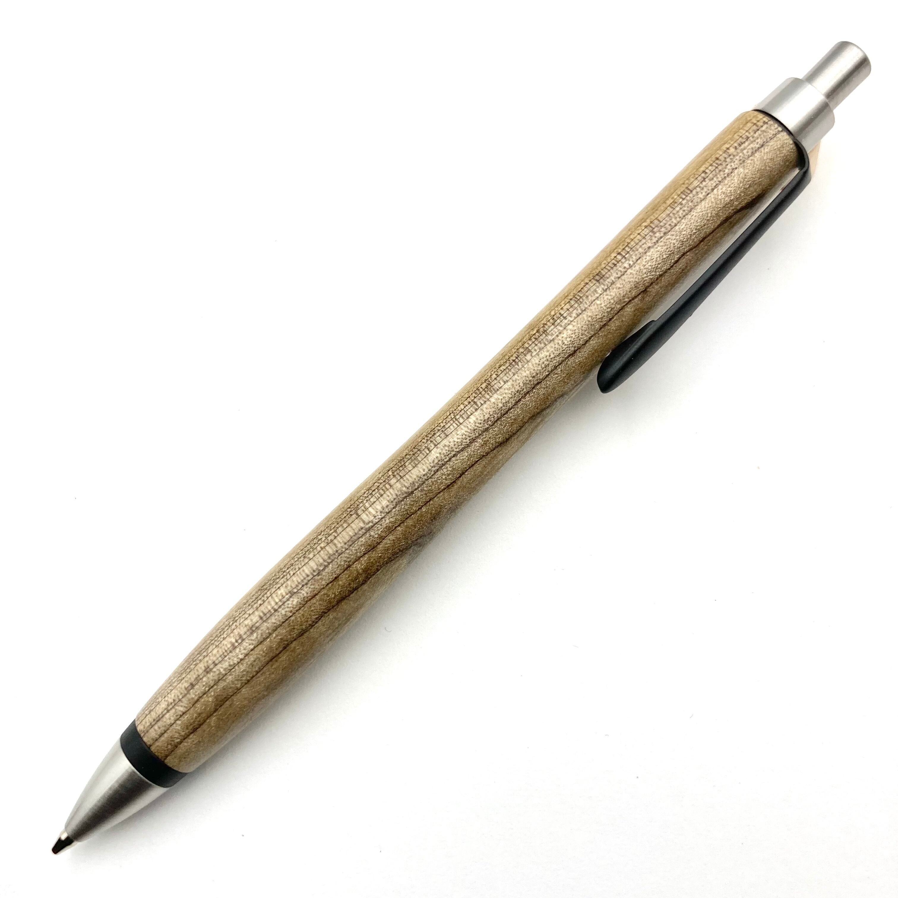 ペンシルは軸ブレが起こりにくい固定式口金を採用し、木の表情を最大限に楽しめる木軸の長さと、書き心地にこだわったバランスで金具を設計してあります。