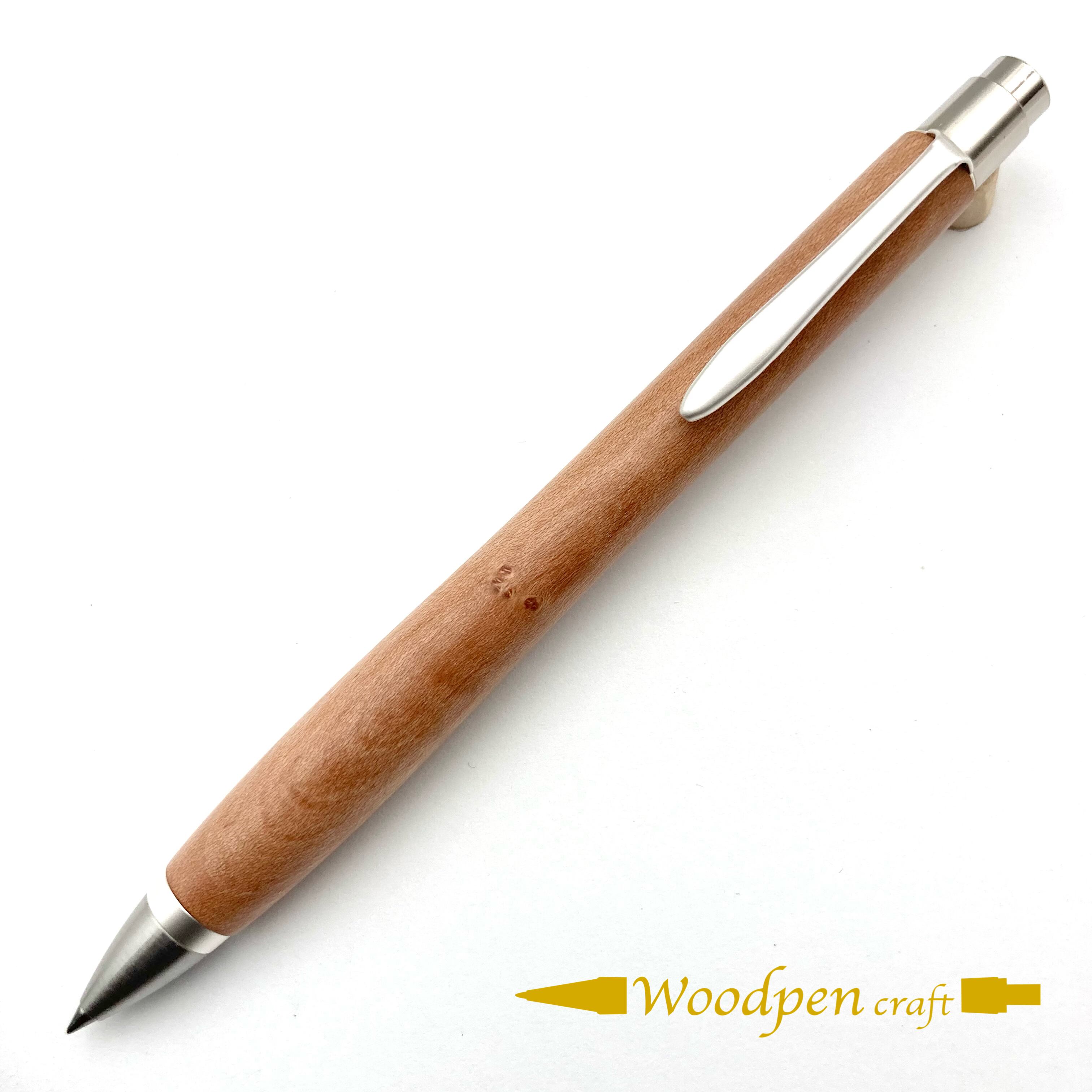 ボールペンのノックシステムは、ドイツ最高のクリックメカニズムを採用してあります。このメカニズムはユニークな機構のため、クリックしたときのカチカチ音が静かで、どんな場所でも気兼ねなく使うことができます。滑らかに動くこのプッシュ感覚を一度味わうと他には戻れなくなってしまうほどの魅力があります。 100分の1単位の加工精度で削り出されたペン先は、軸ブレも全くありません。