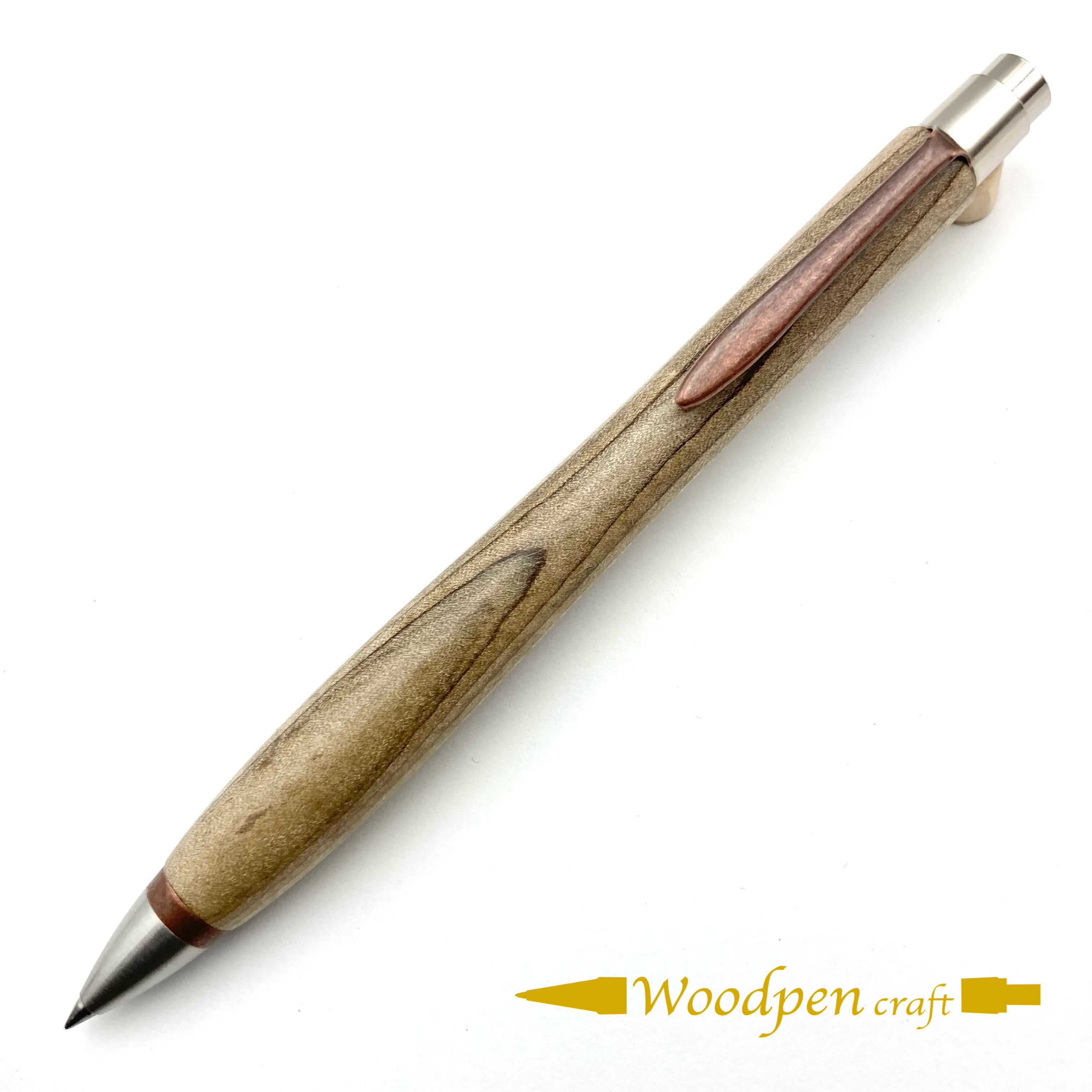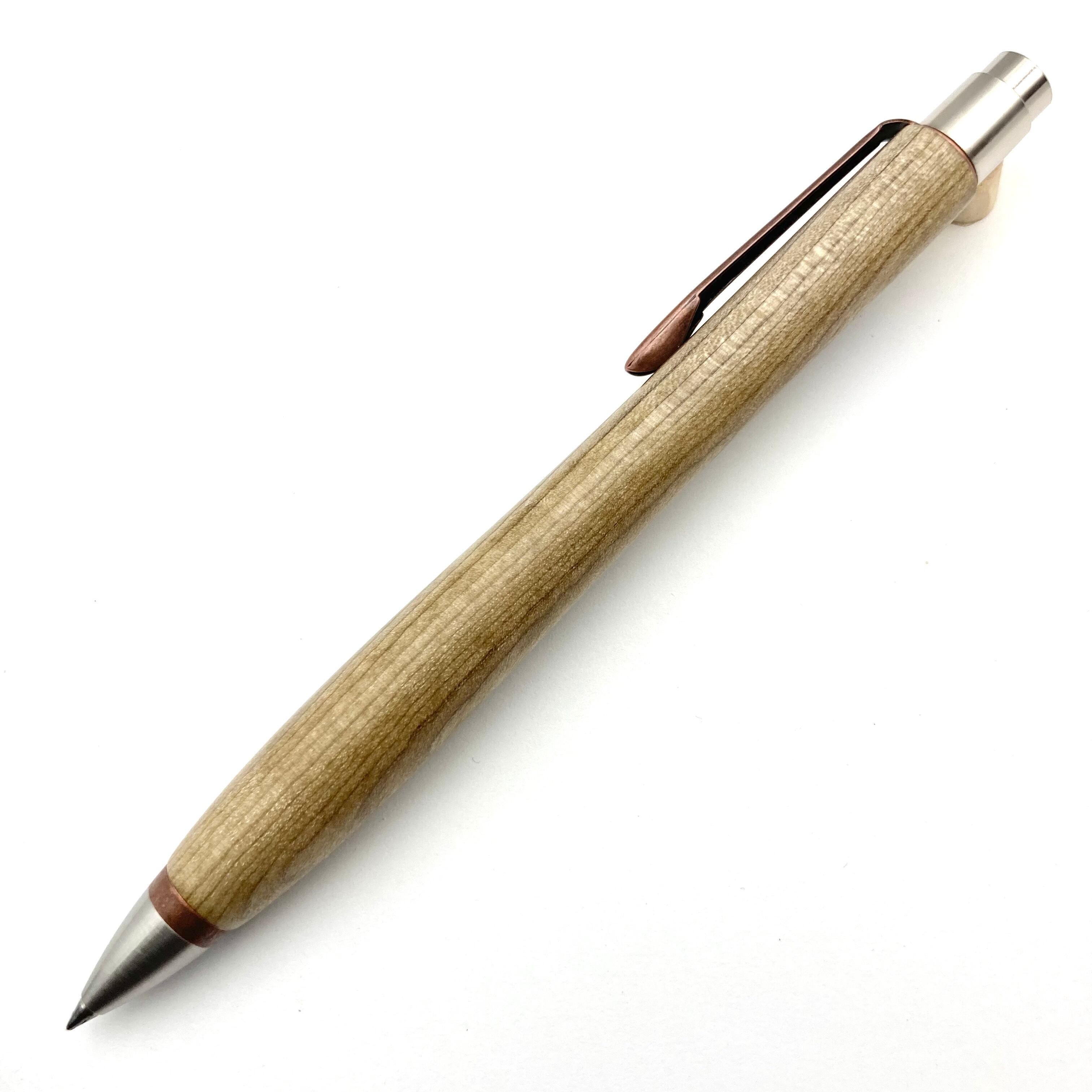 ボールペンのノックシステムは、ドイツ最高のクリックメカニズムを採用してあります。このメカニズムはユニークな機構のため、クリックしたときのカチカチ音が静かで、どんな場所でも気兼ねなく使うことができます。滑らかに動くこのプッシュ感覚を一度味わうと他には戻れなくなってしまうほどの魅力があります。 100分の1単位の加工精度で削り出されたペン先は、軸ブレも全くありません。