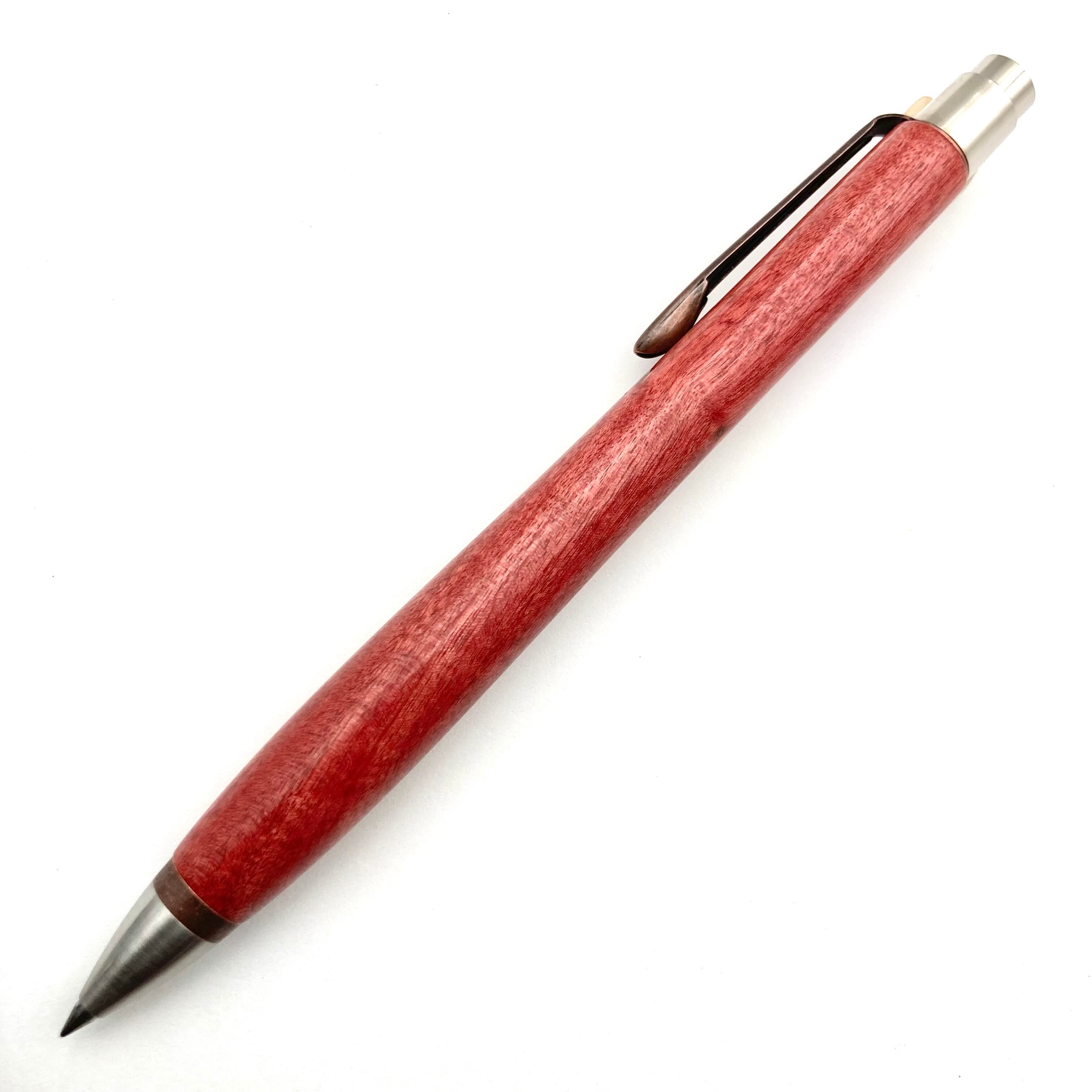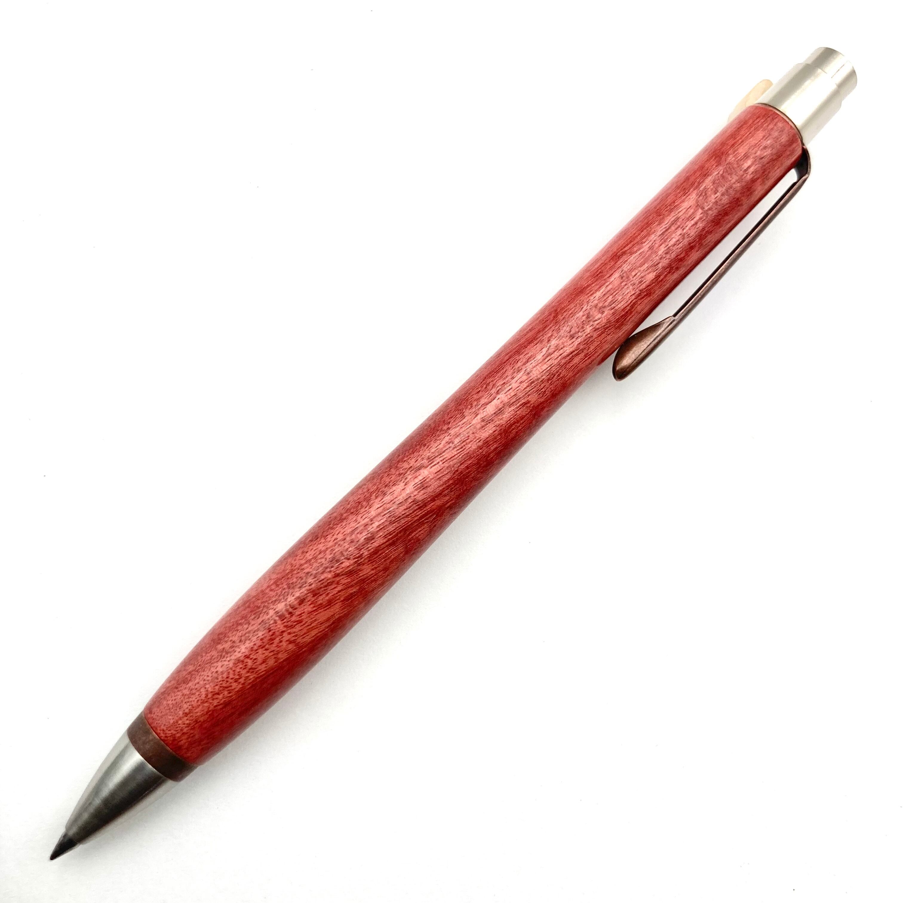 ボールペンのノックシステムは、ドイツ最高のクリックメカニズムを採用してあります。このメカニズムはユニークな機構のため、クリックしたときのカチカチ音が静かで、どんな場所でも気兼ねなく使うことができます。滑らかに動くこのプッシュ感覚を一度味わうと他には戻れなくなってしまうほどの魅力があります。 100分の1単位の加工精度で削り出されたペン先は、軸ブレも全くありません。