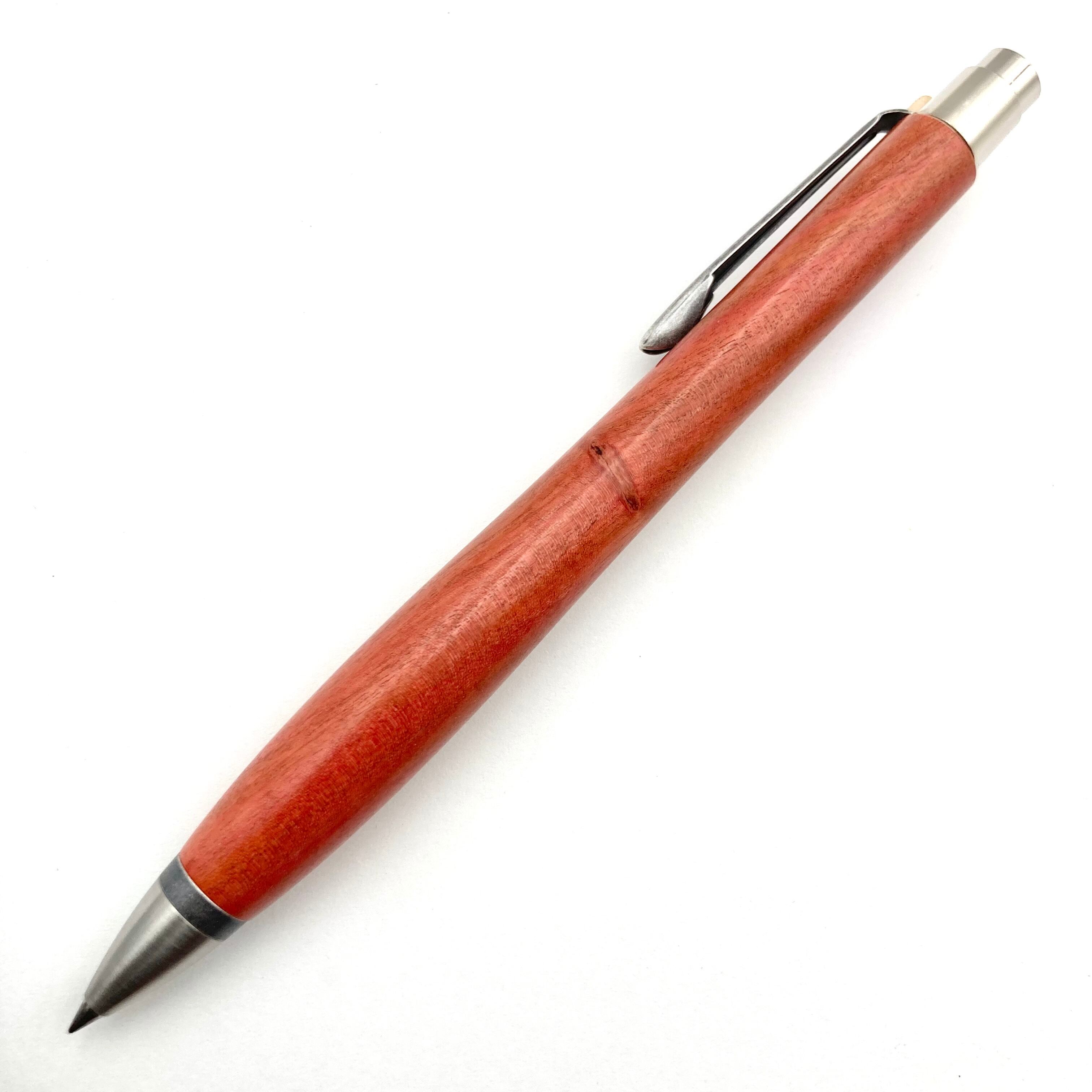 ボールペンのノックシステムは、ドイツ最高のクリックメカニズムを採用してあります。このメカニズムはユニークな機構のため、クリックしたときのカチカチ音が静かで、どんな場所でも気兼ねなく使うことができます。滑らかに動くこのプッシュ感覚を一度味わうと他には戻れなくなってしまうほどの魅力があります。 100分の1単位の加工精度で削り出されたペン先は、軸ブレも全くありません。