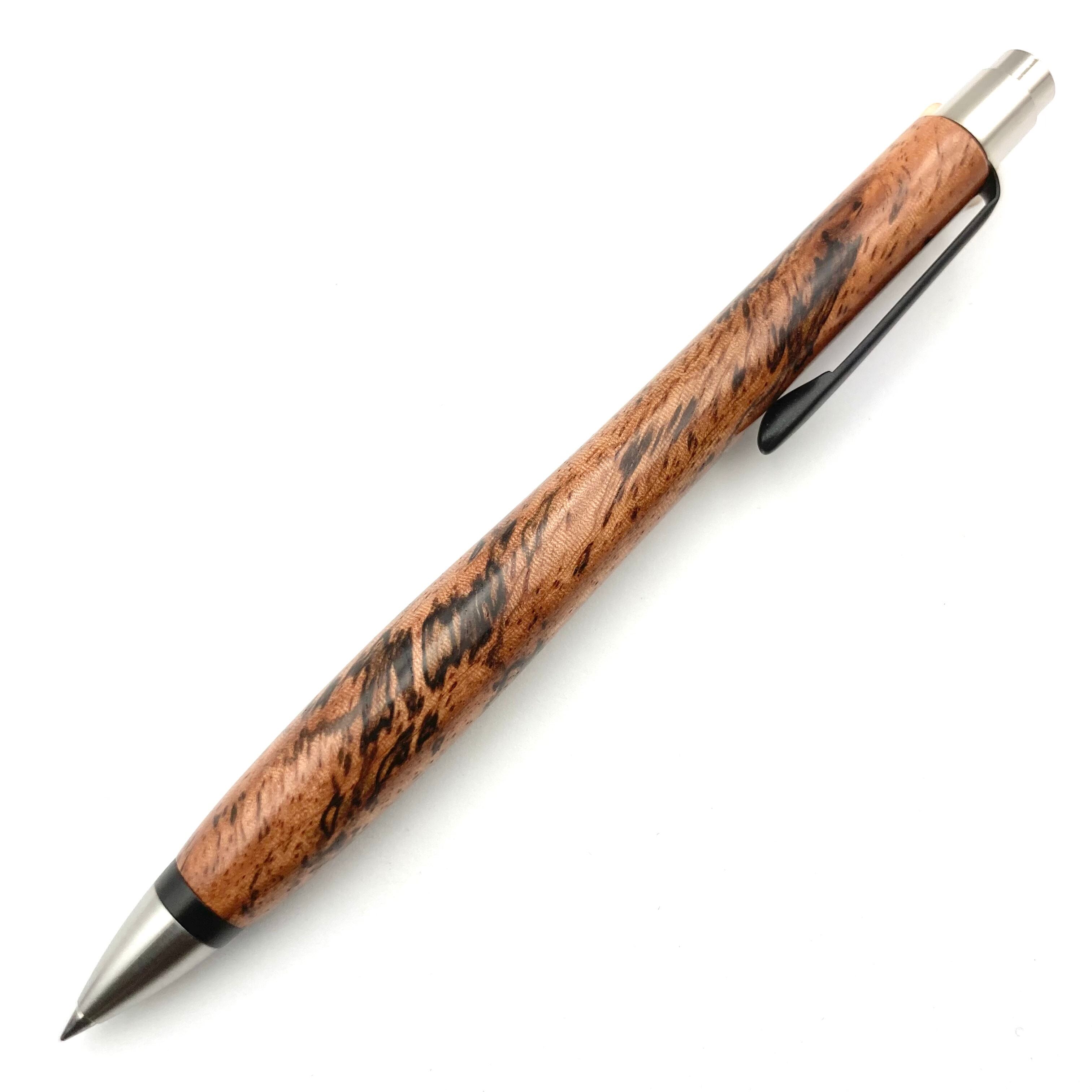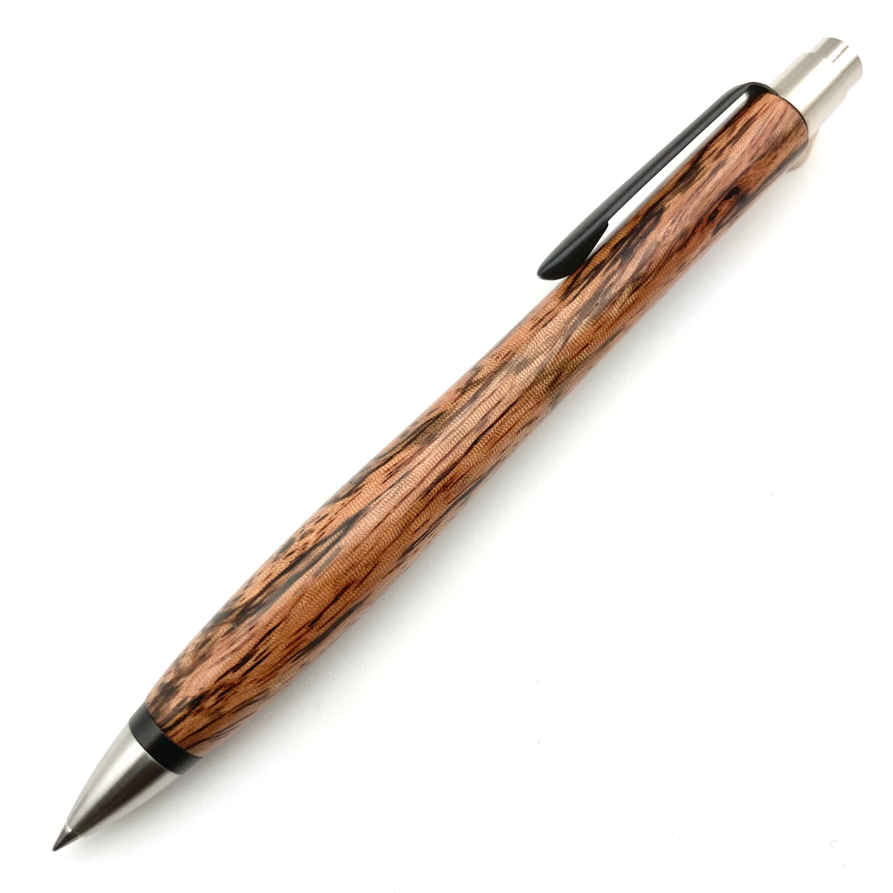 ボールペンのノックシステムは、ドイツ最高のクリックメカニズムを採用してあります。このメカニズムはユニークな機構のため、クリックしたときのカチカチ音が静かで、どんな場所でも気兼ねなく使うことができます。滑らかに動くこのプッシュ感覚を一度味わうと他には戻れなくなってしまうほどの魅力があります。 100分の1単位の加工精度で削り出されたペン先は、軸ブレも全くありません。