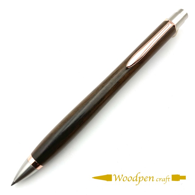 ボールペンのノックシステムは、ドイツ最高のクリックメカニズムを採用してあります。このメカニズムはユニークな機構のため、クリックしたときのカチカチ音が静かで、どんな場所でも気兼ねなく使うことができます。滑らかに動くこのプッシュ感覚を一度味わうと他には戻れなくなってしまうほどの魅力があります。 100分の1単位の加工精度で削り出されたペン先は、軸ブレも全くありません。