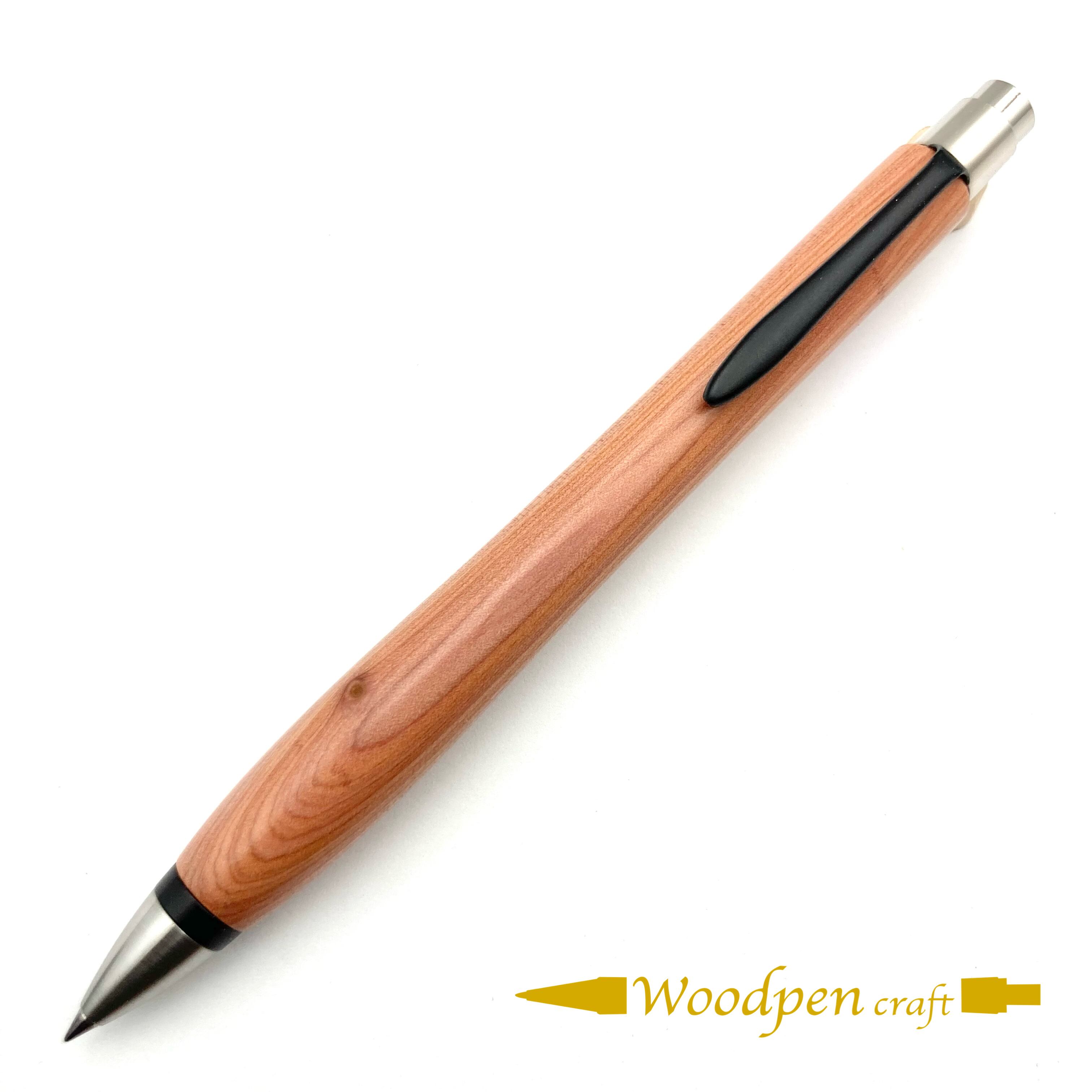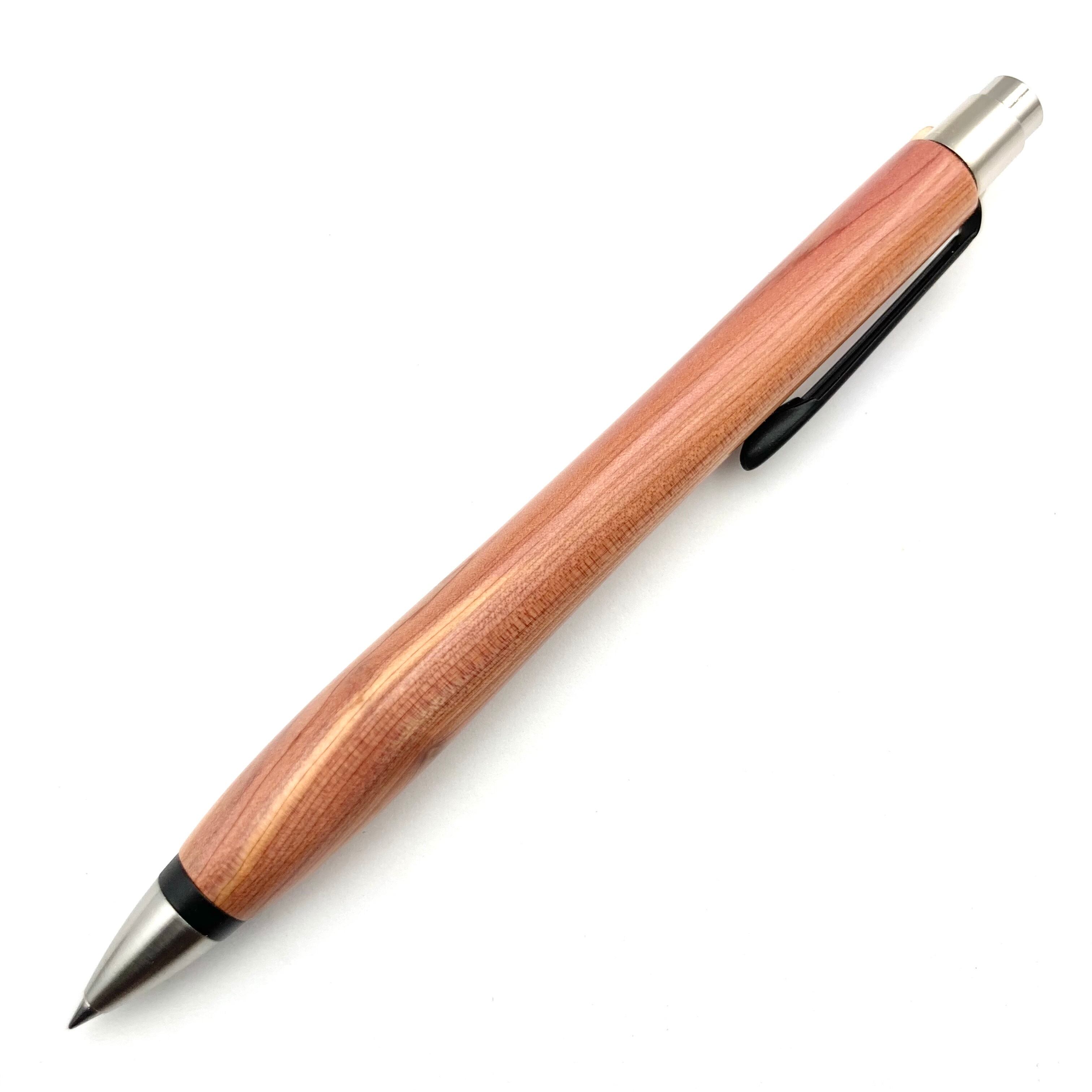 ボールペンのノックシステムは、ドイツ最高のクリックメカニズムを採用してあります。このメカニズムはユニークな機構のため、クリックしたときのカチカチ音が静かで、どんな場所でも気兼ねなく使うことができます。滑らかに動くこのプッシュ感覚を一度味わうと他には戻れなくなってしまうほどの魅力があります。 100分の1単位の加工精度で削り出されたペン先は、軸ブレも全くありません。